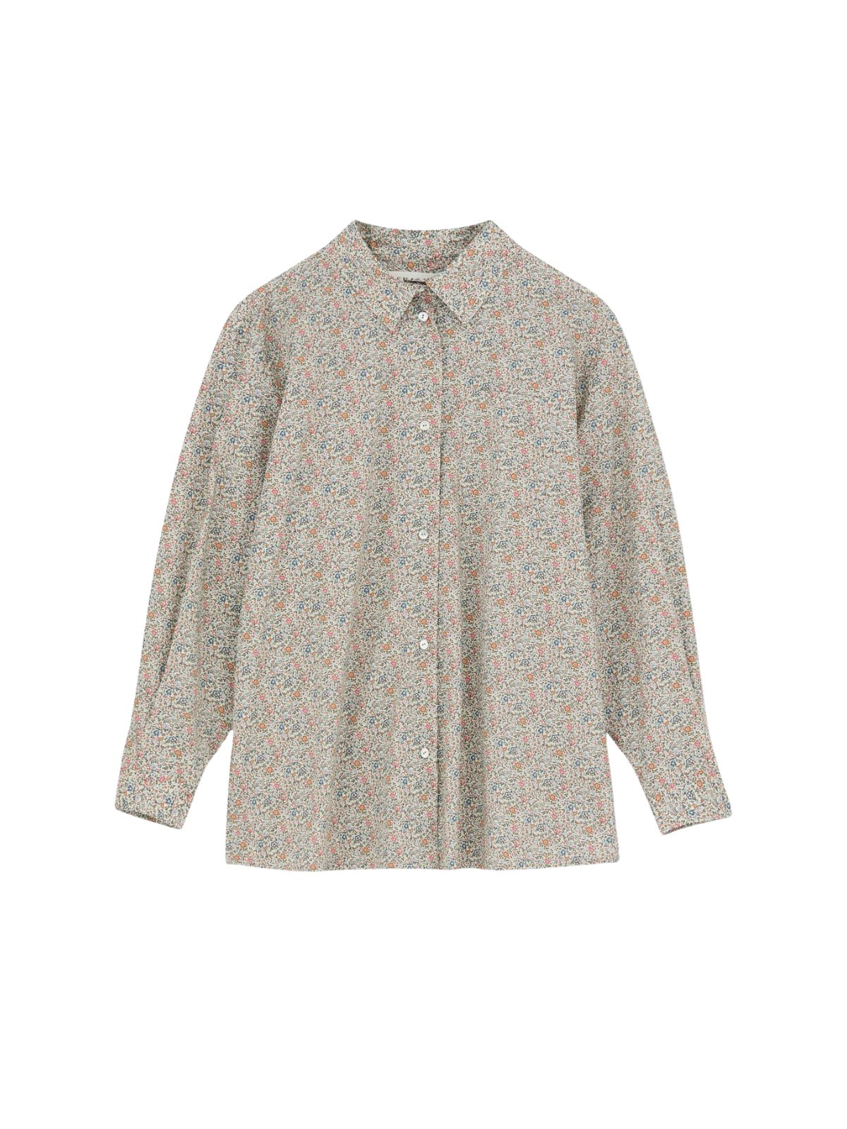 Oversize EDGAR skjortefra SKALL med klassisk krave, brystlomme og læg i ryggen samt med et fint flora print. Skjorten har lange ærmer med bred manchet, knaplukning samt rundet kant.Længde: ca. 79 cm