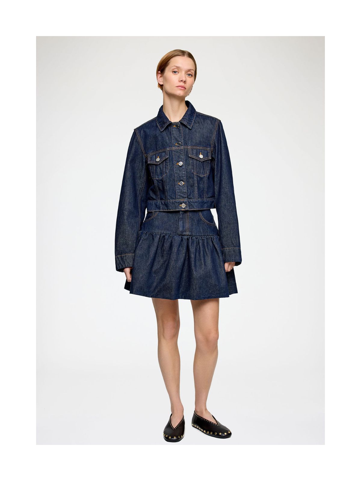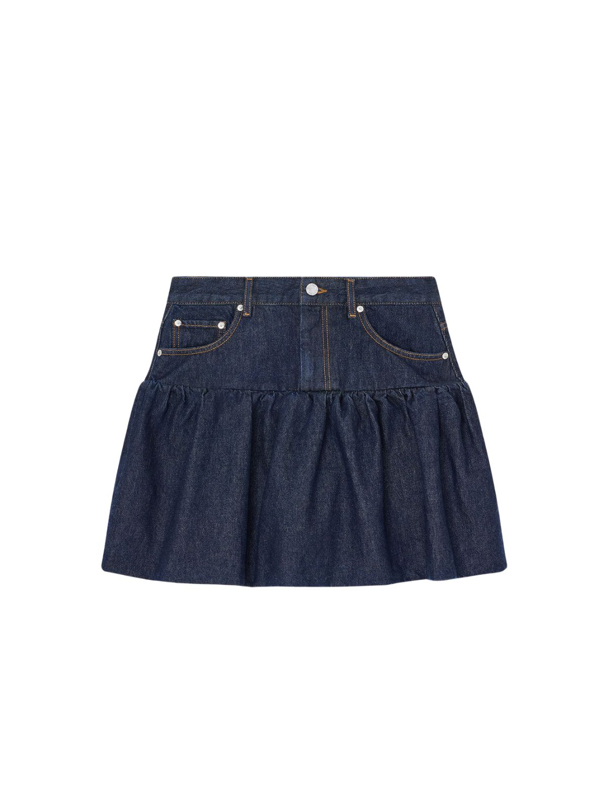 RINSE Smart boblenederdel fra GANNI i denim design. Nederdelen har knap og lynlås lukning samt 5 lommer.Længde: MINI