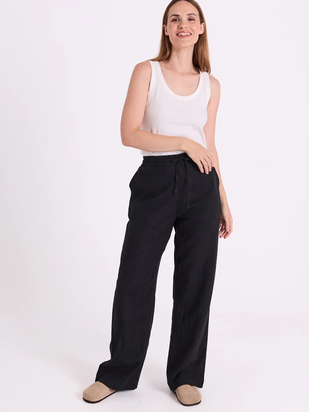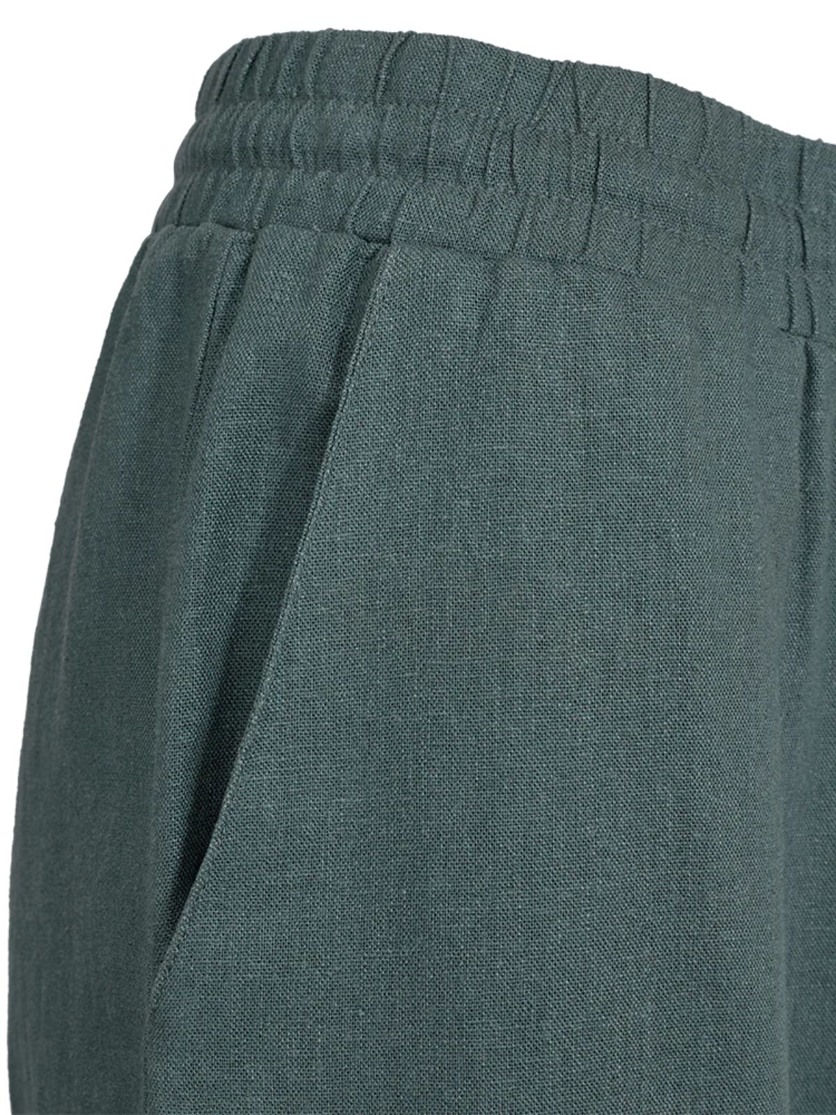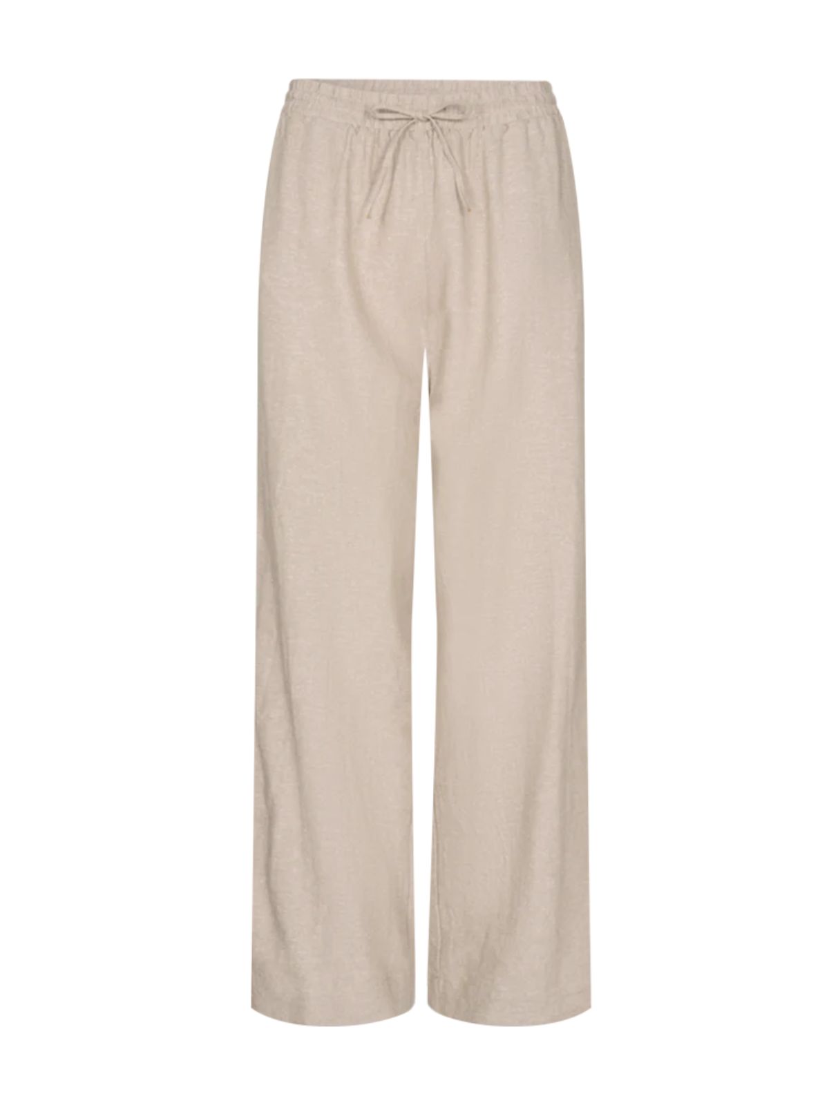 Hør buks fra Freequent. Buksen har elastik i taljen med snøre, lommer i siden og lige ben. De er perfekte til sommerens varme vejr!Indvendig benlængde. 82 cm