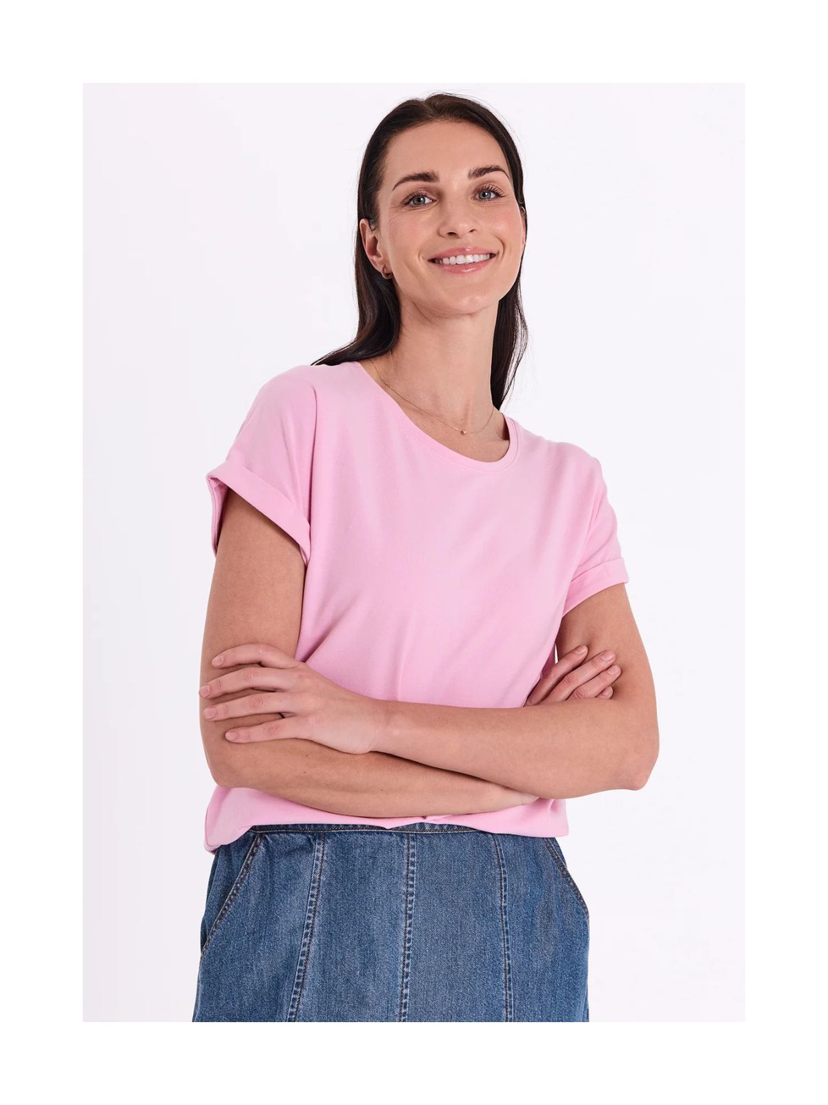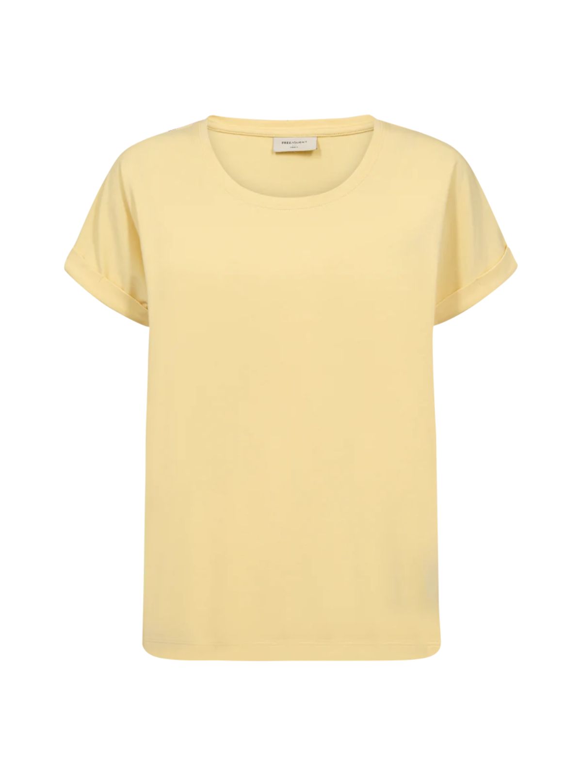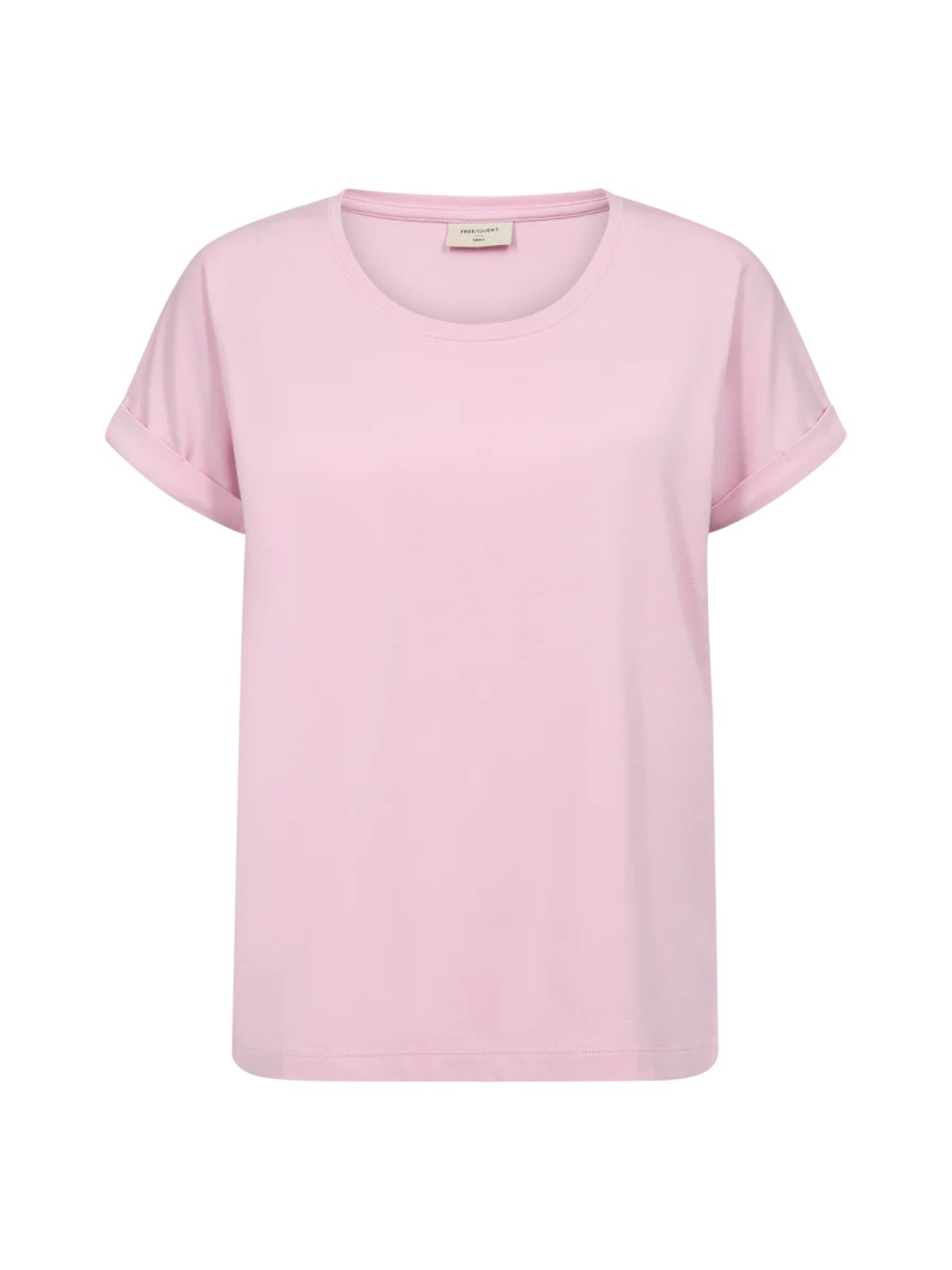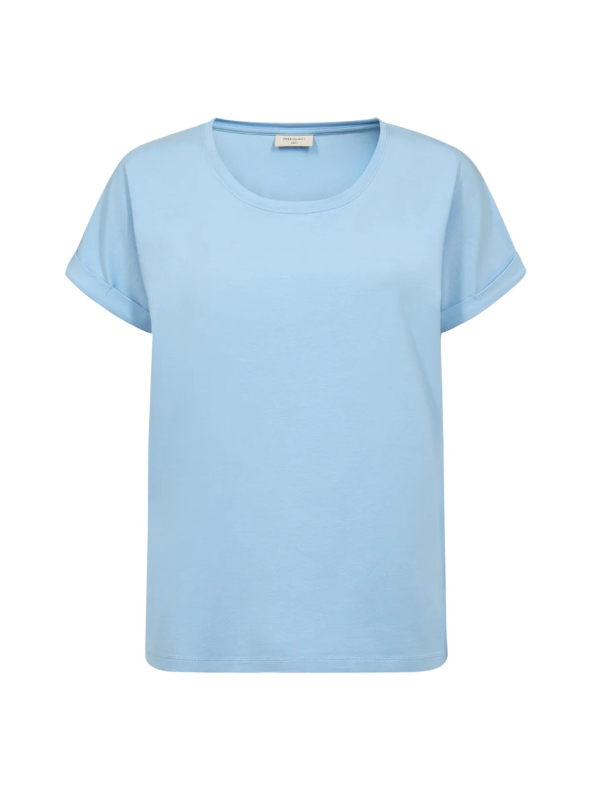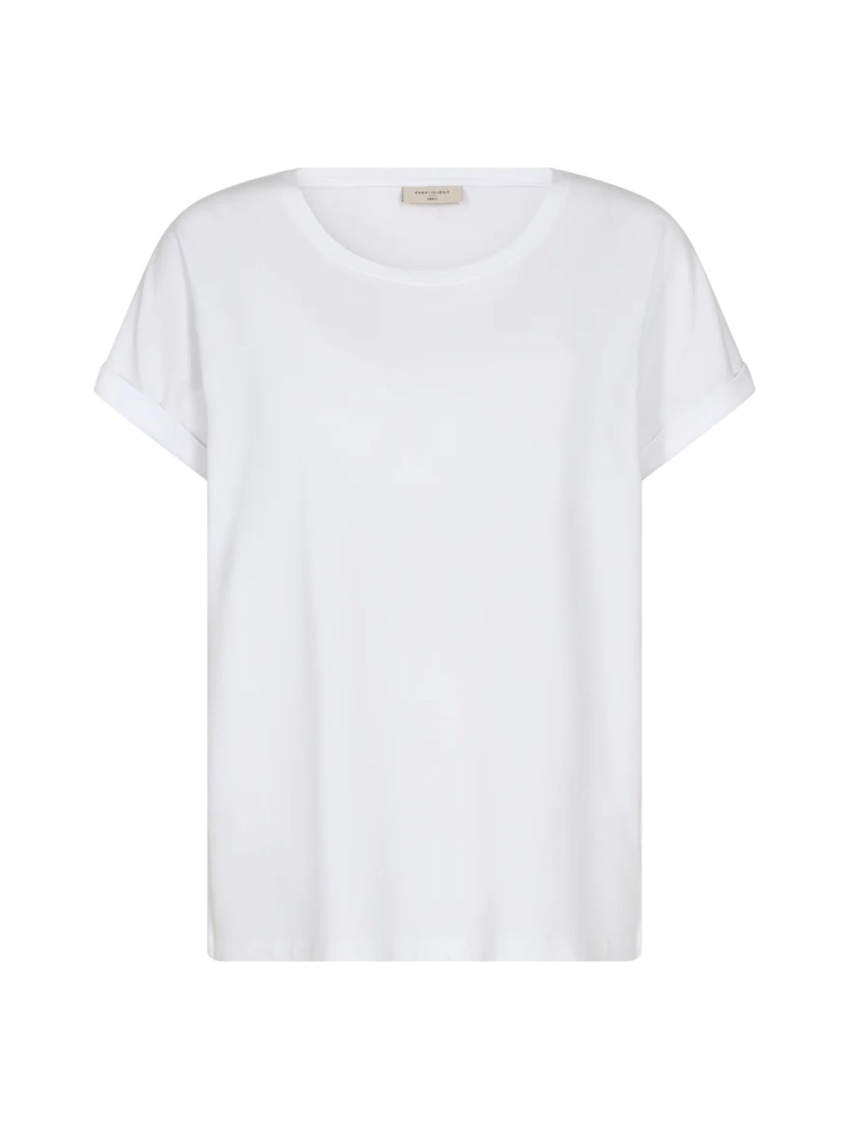 Smart T-shirt fra Freequent i en blød kvalitet. T-shirten er enkel i modellen med en smal ribkant i den runde halsudskæring, korte ærmer med opsmøg samt en løs pasform.Længde: ca. 60 cm