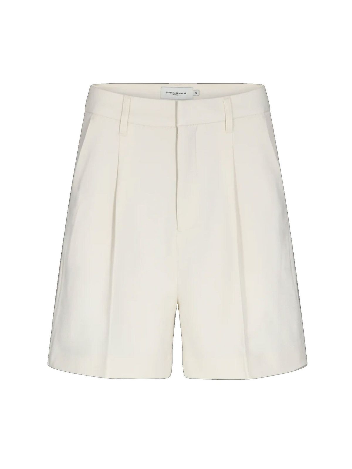 Elegante shorts fra Copenhagen Muse i klassisk design med høj talje og pressefolder, stiklommer samt bælte stropper.Indvendig benlængde: ca. 21 cm