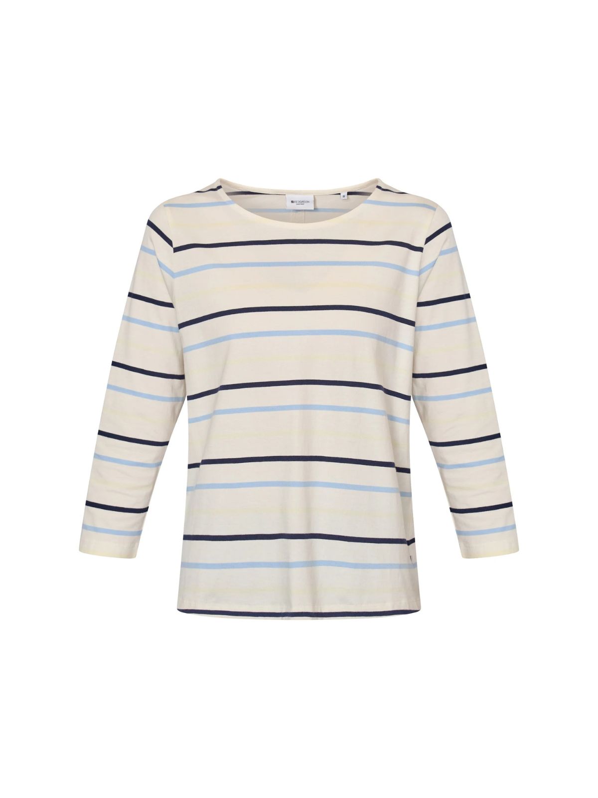 Feminin stribet basisbluse fra REDGREEN i tidløst design med 3/4-ærmer i 100% bomuld. En klassisk og alsidig tilføjelse til din garderobe.Længde: ca. 60 cm