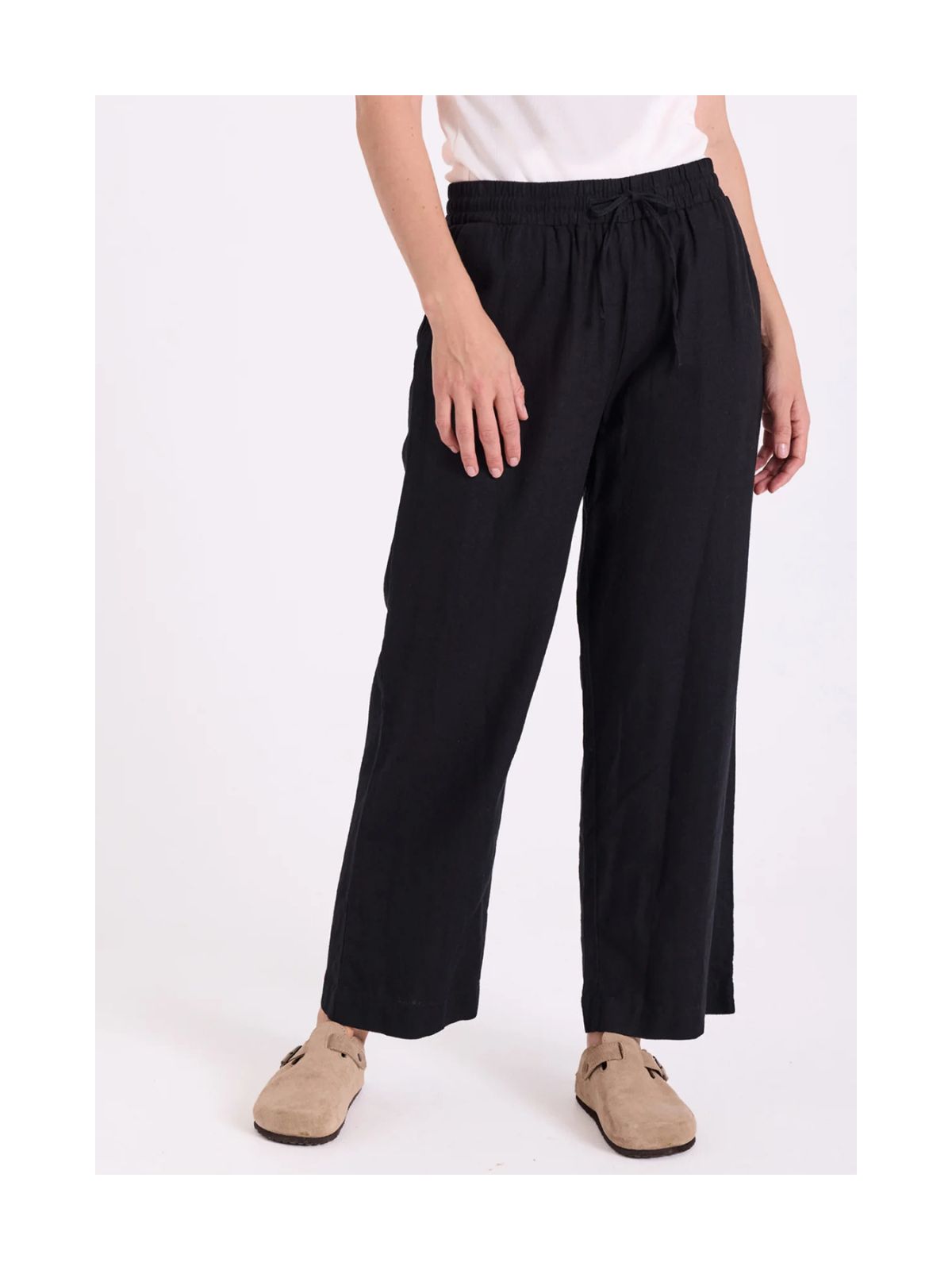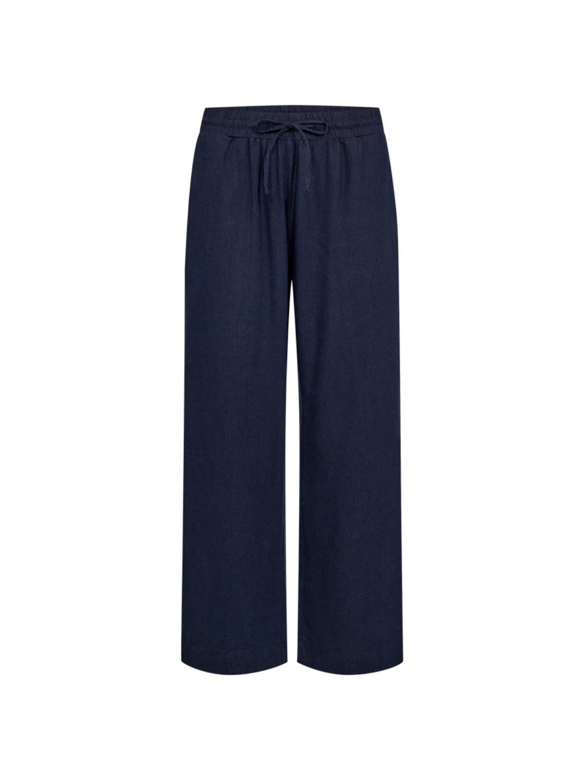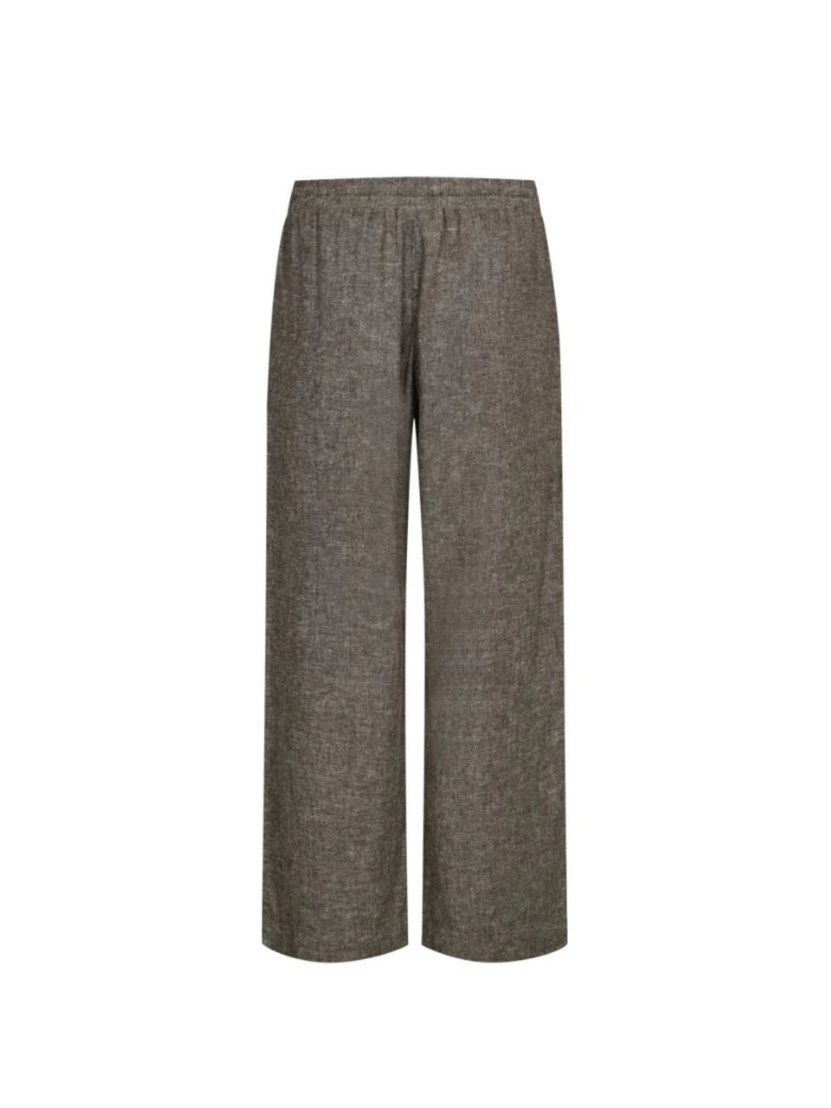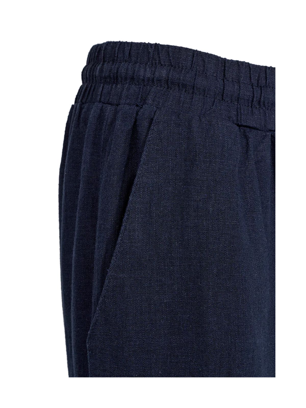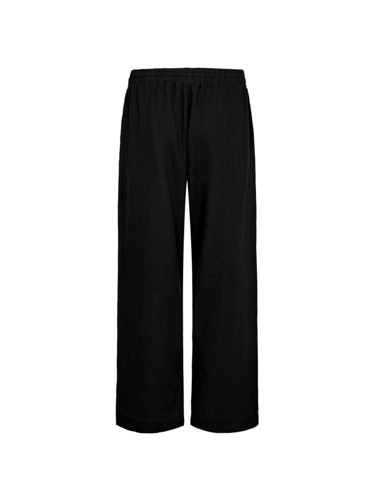 Ankellange hørbukser fra Freequent i en let hørkvalitet. Bukserne er enkle i modellen med elastik og bindebånd i den høje talje, sidelommer samt en skøn flatterende løs pasform.Indvendig Benlængde: 70 cm
