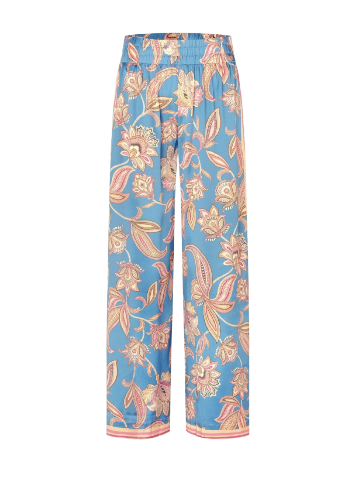 Silkebukser med brede ben – en Dea Kudibal-favorit. Designet har et markant blomsterprint på en klar blå bund og giver et ubesværet, stilfuldt look. Perfekte med en enkel top eller strik.