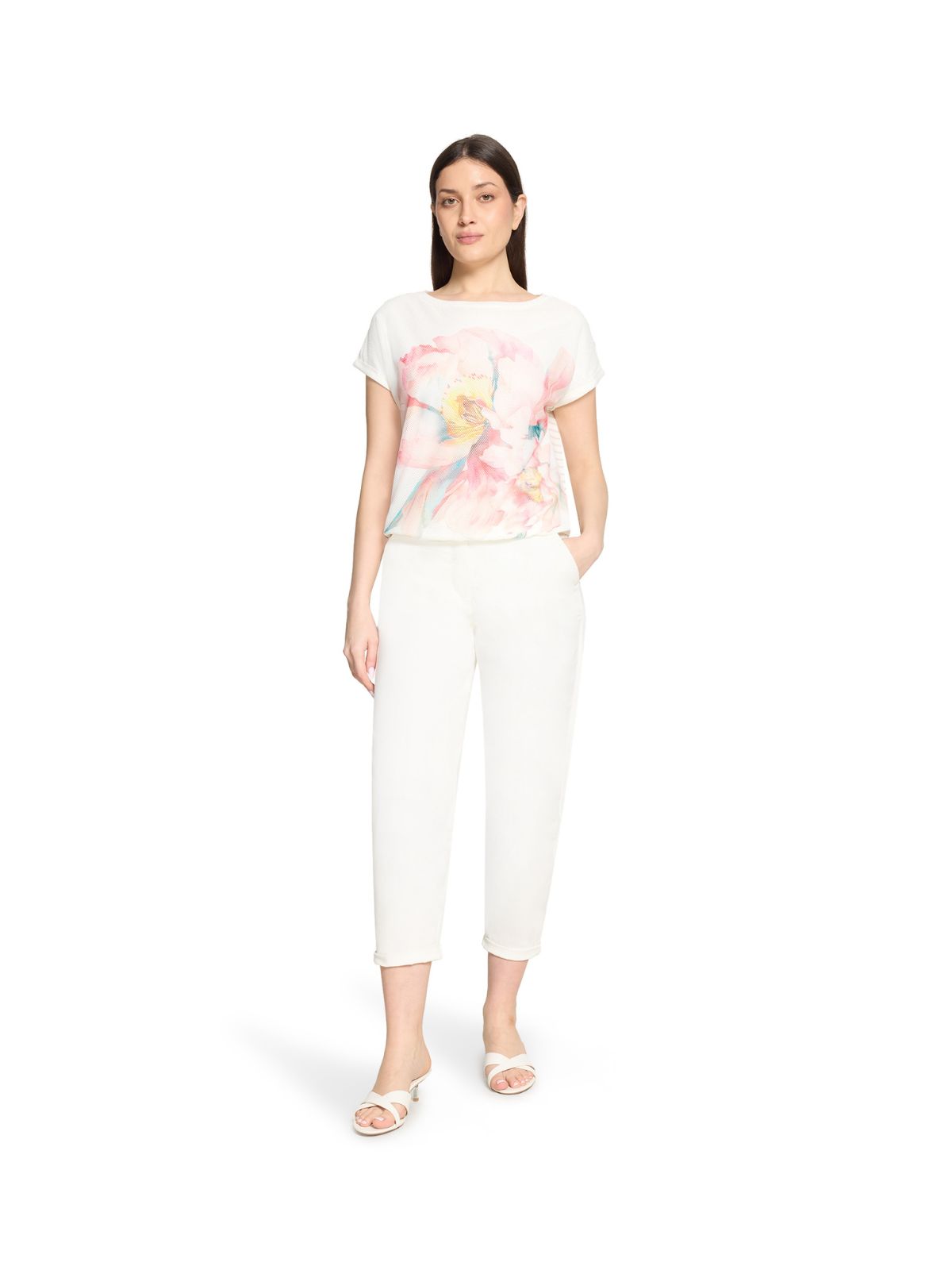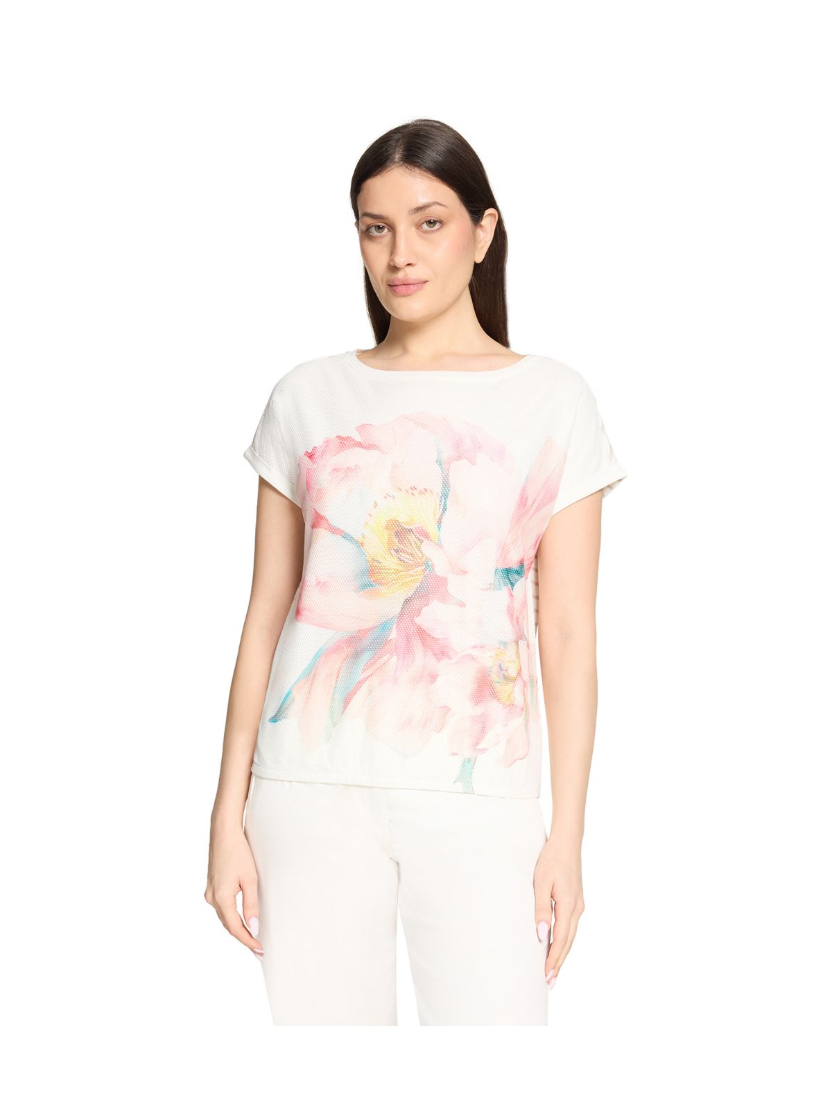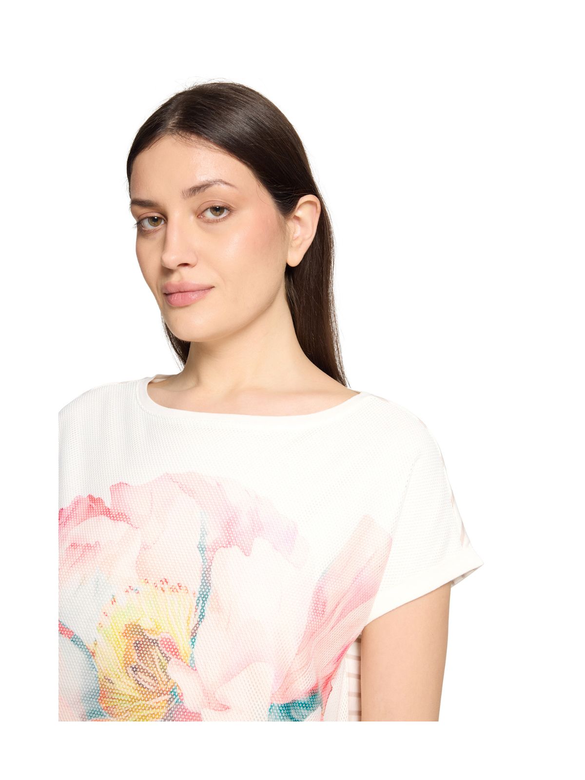 Feminin bluse fra BETTY BARCLAY med flot floral applikation foran samt sarte striber på ryggen. Blusen har en rundet halsudskæring samt korte flagermus ærmer.Længde: ca. 60 cm