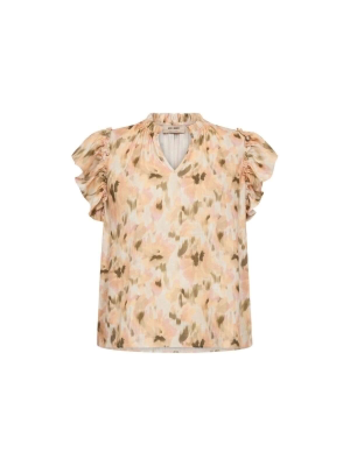 Let og luftig bluse med blødt, kunstnerisk blomsterprint. Rund hals og korte ærmer med flæsedetaljer giver et elegant touch, mens den regulære pasform sikrer et smukt fald. Perfekt til både hverdag og mere velklædte lejligheder.