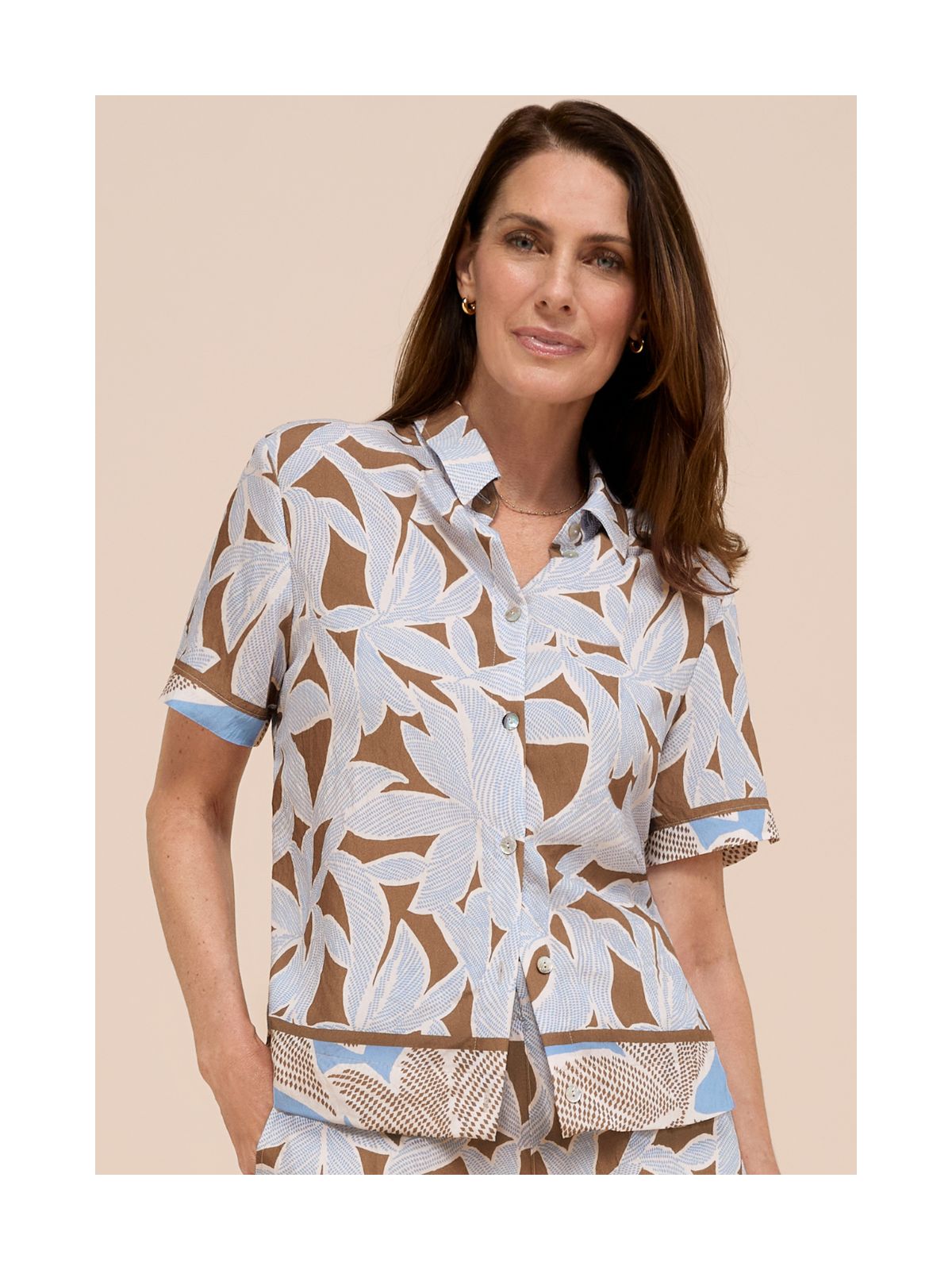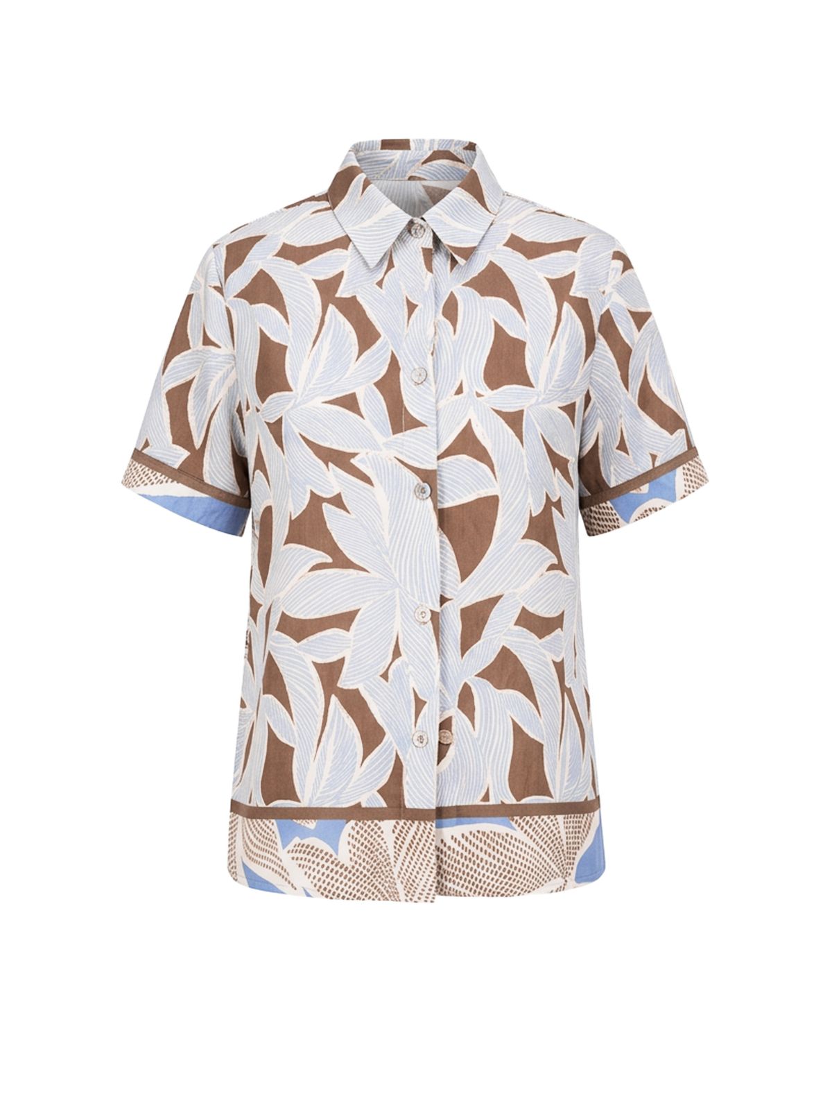 Elegant sommer skjorte fra BIANCA med korte ærmer samt eksotisk print. Skjorten har krave samt knaplukning, let taljering og et smart look.Længde: ca. 60 cm