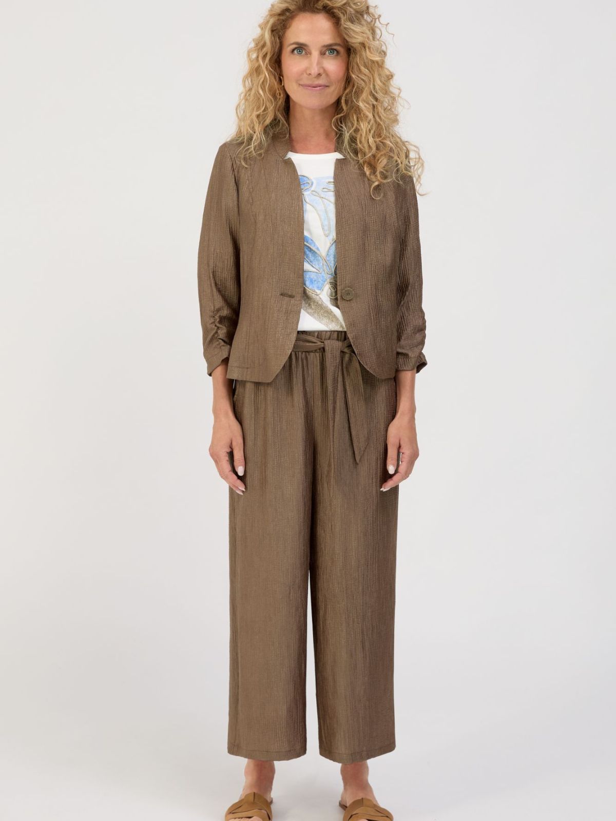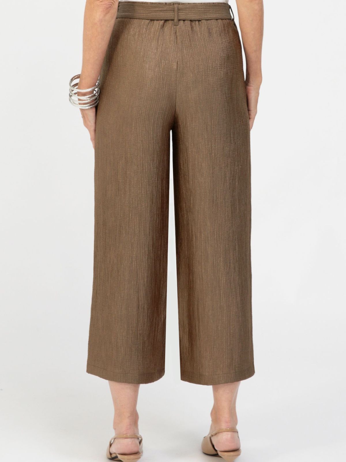 Feminin Parigi culotte fra BIANCA imponerer med deres stilfulde teksturerede look og moderigtige vide ben. Buksen har sidelommer og et matchende stofbælte som tilføjer et afslappet præg, mens den elastiske linning med bæltestropper sikrer en behagelig og fleksibel pasform. Den lige, cropped silhuet giver culottes et moderne look og gør dem utroligt alsidige. Parigi er derfor den ideelle ledsager til moderne og stilfulde hverdagsoutfits.Indvendig Benlængde: 62 cm,