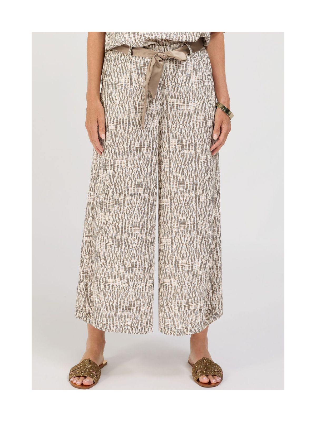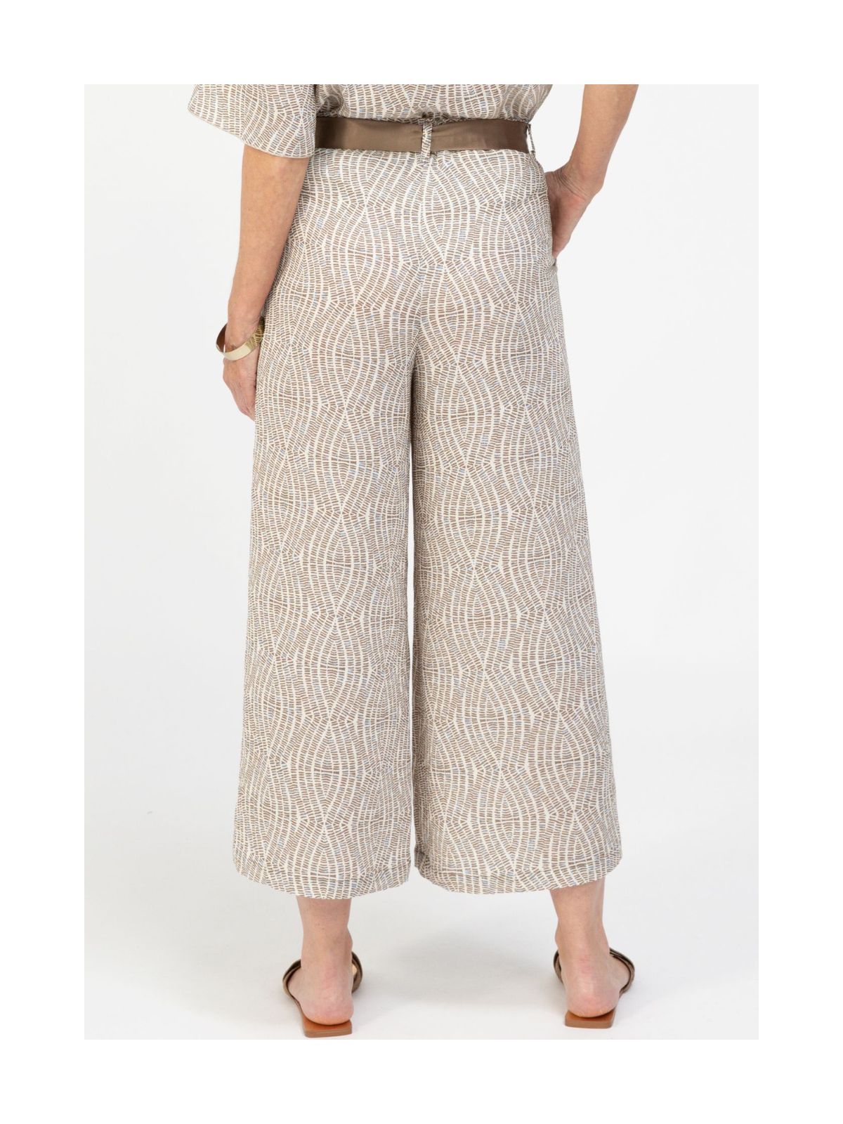 Smart culottes fra BIANCA imponerer med et cool all-over print i en trendy farve, der giver din garderobe et frisk touch. Buksens vide ben og det cropped, lige snit skaber en moderne silhuet og et stilfuldt look. Den elastiske linning giver komfort, mens stofbæltet fremhæver taljen på en stilfuld måde. Sidelommer giver et praktisk og afslappet touch.Indvendig Benlængde: 62 cm