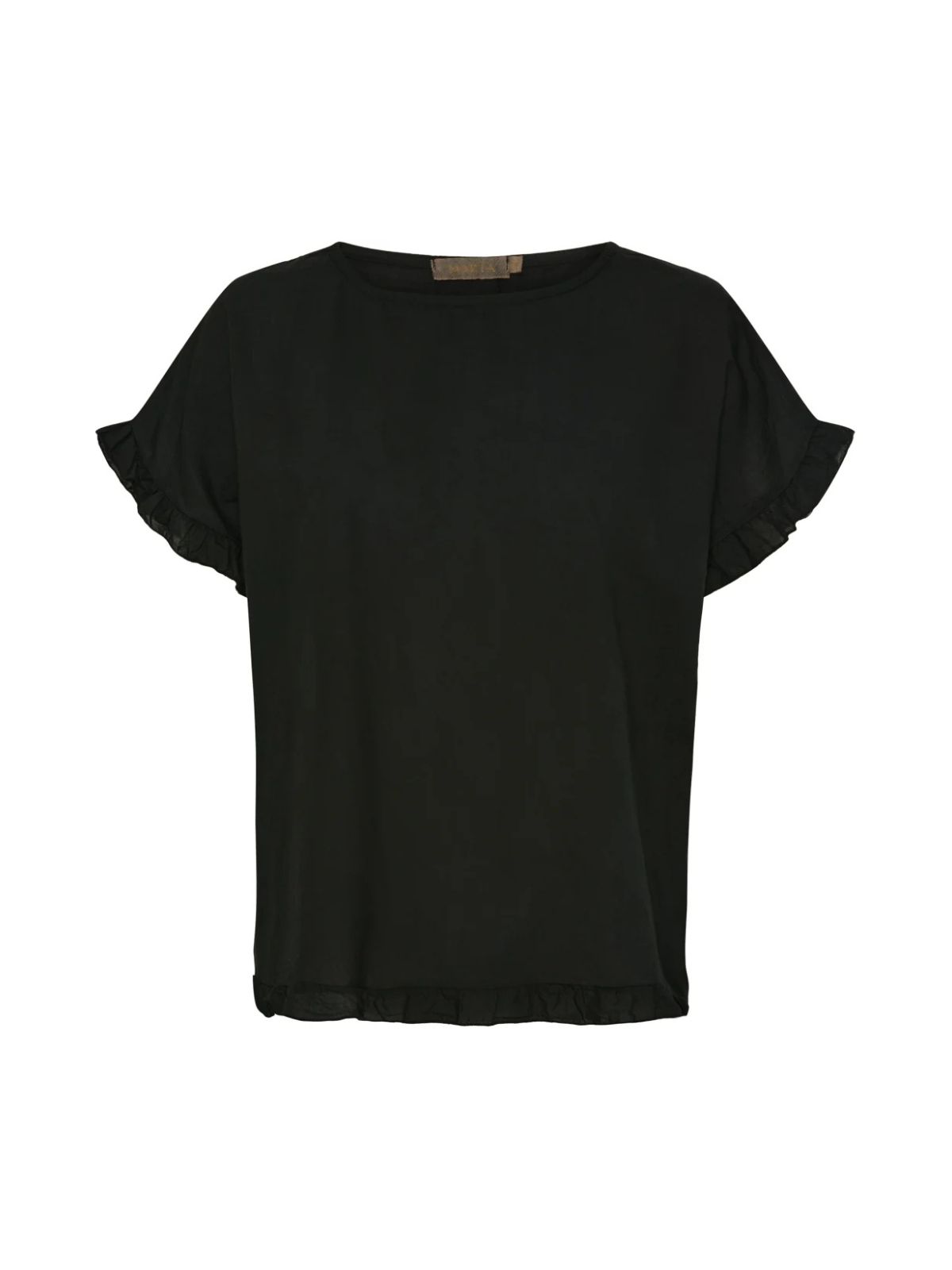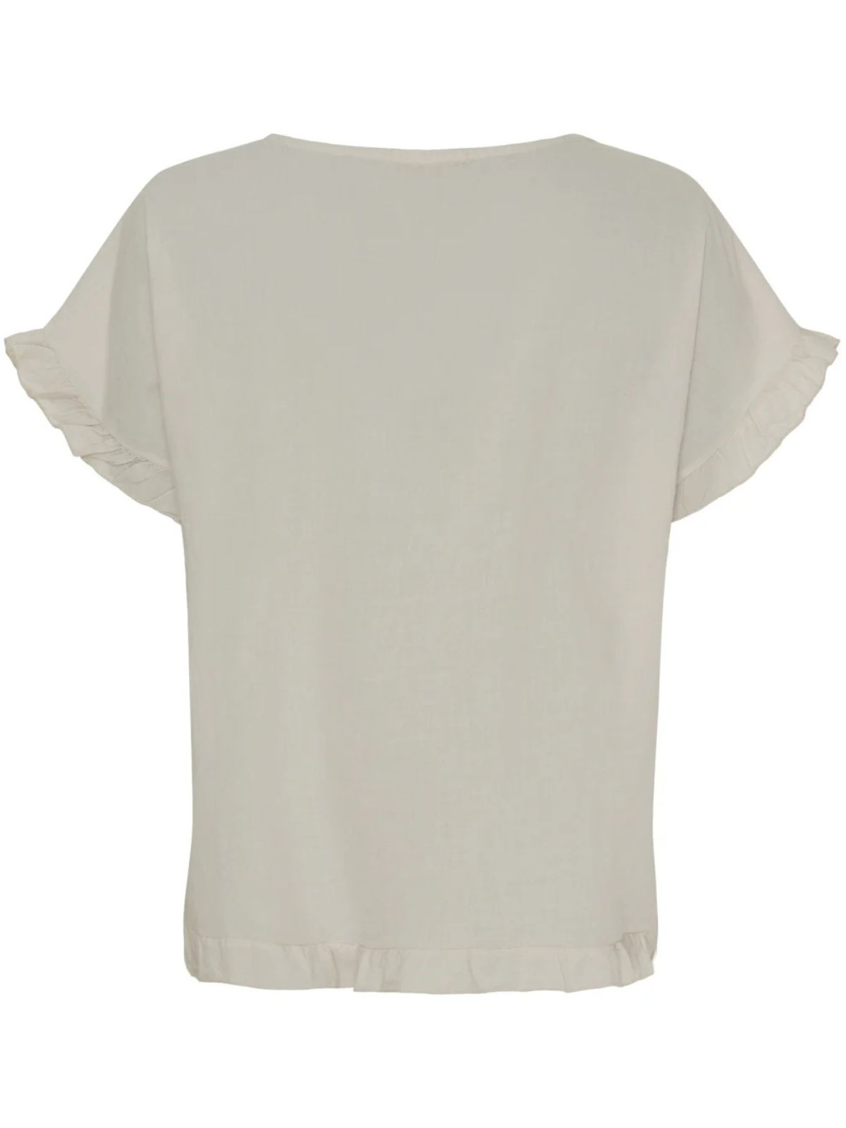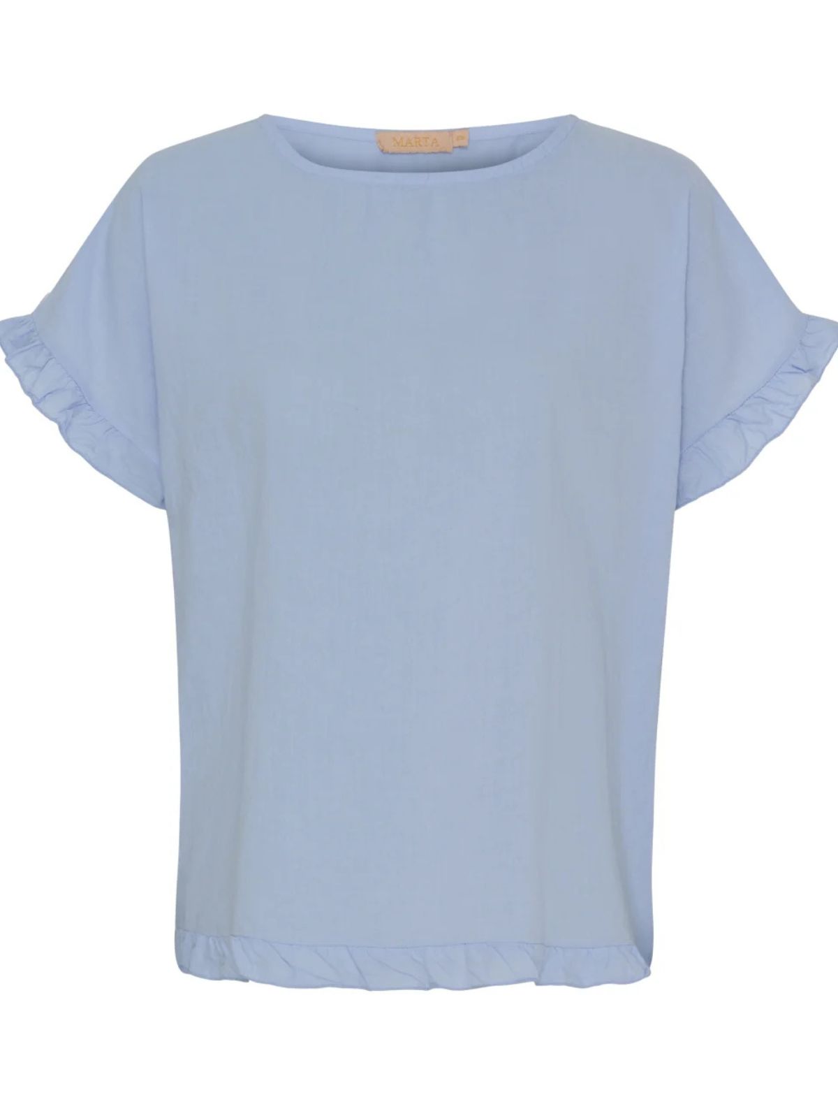 Smart bluse top fra Marta du Chateau med rund hals og korte flæse ærmer ligeså nederste kant.Længde: ca. 60 cm