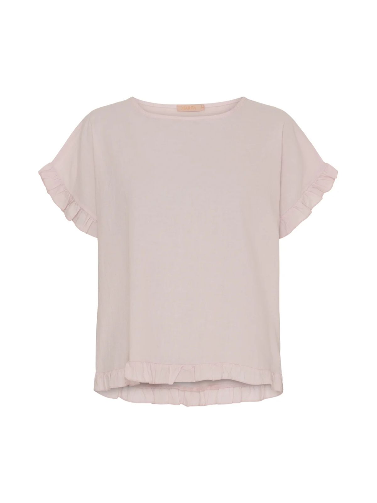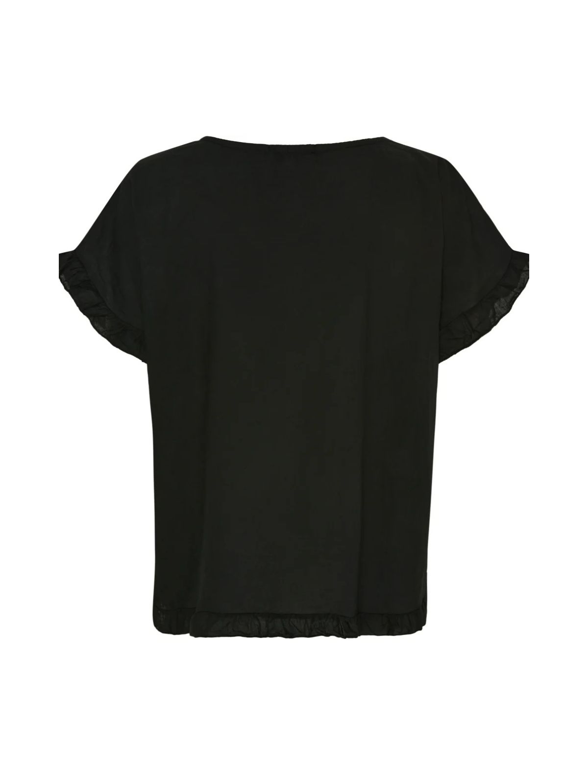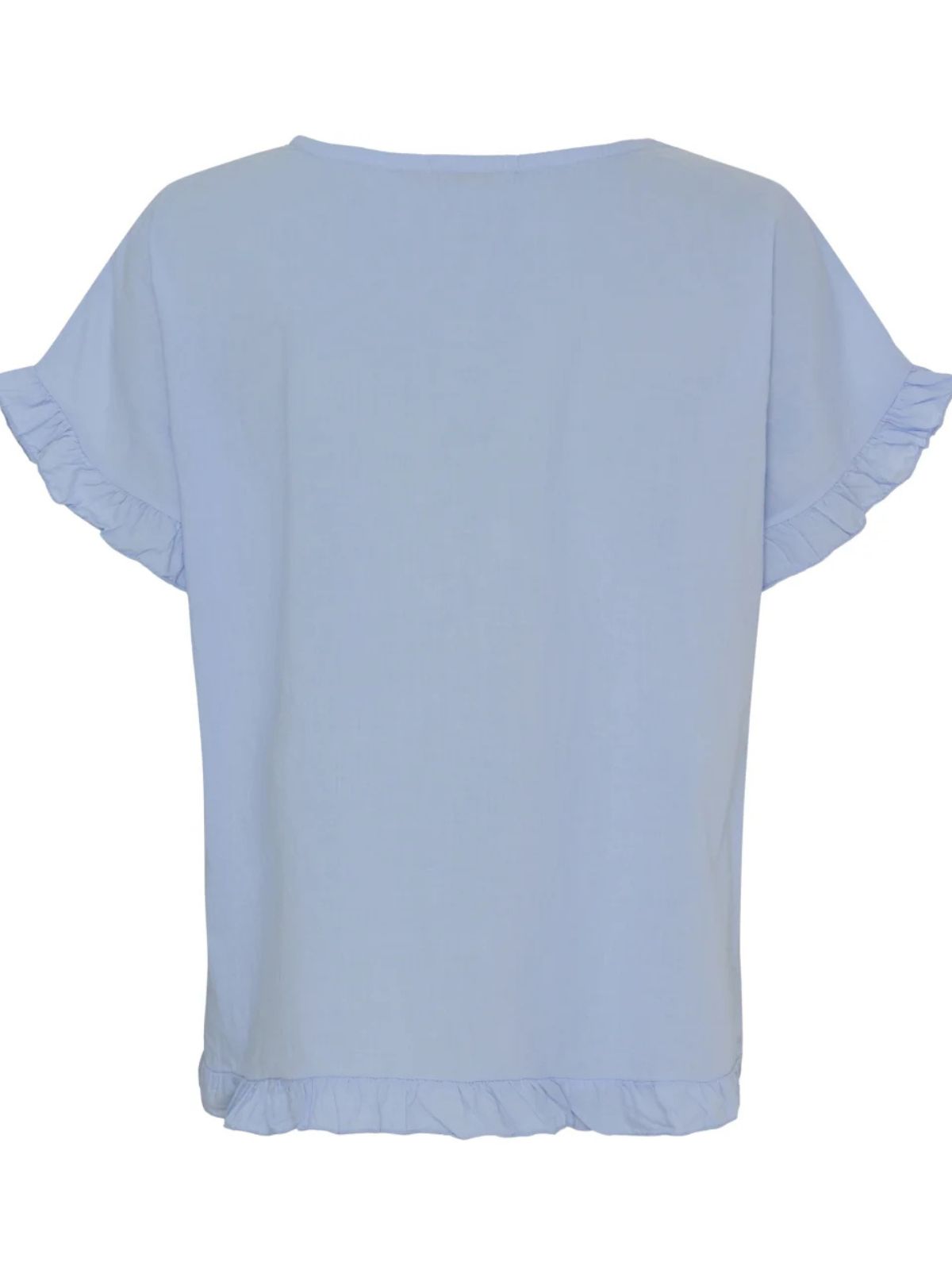 Smart bluse top fra Marta du Chateau med rund hals og korte flæse ærmer ligeså nederste kant.Længde: ca. 60 cm