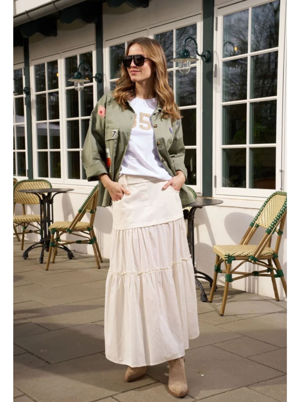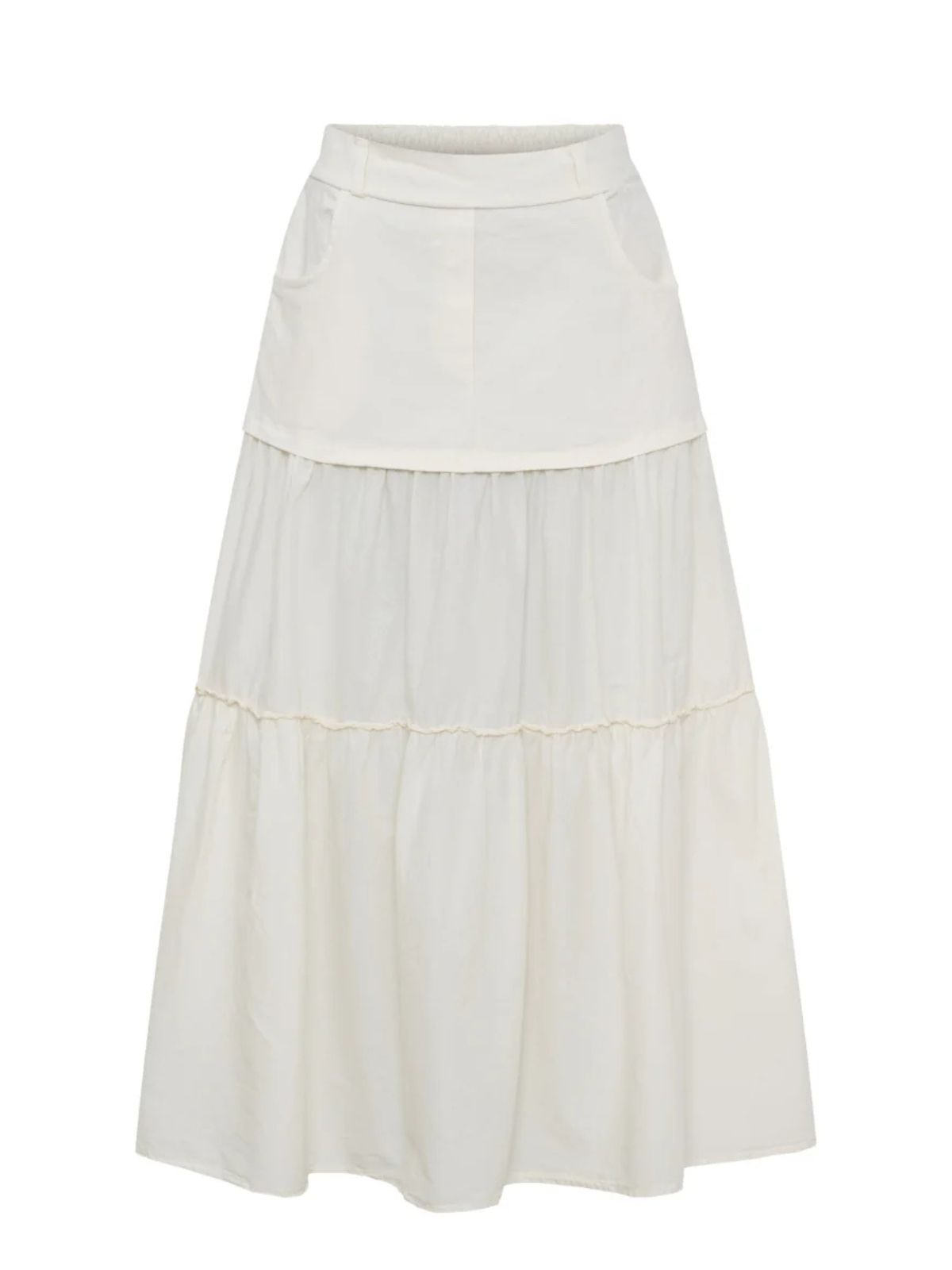 Smuk og feminin nederdel fra Marta Du Chateau i en let og luftig kvalitet. Nederdelen har et elegant lag-på-lag design, der skaber et flot fald og masser af bevægelse.Den elastiske talje sikrer en behagelig pasform, mens det enkle og tidløse design gør den nem at style til både hverdag og mere festlige anledninger. Style den med en strik eller top for et afslappet, men stilfuldt look.