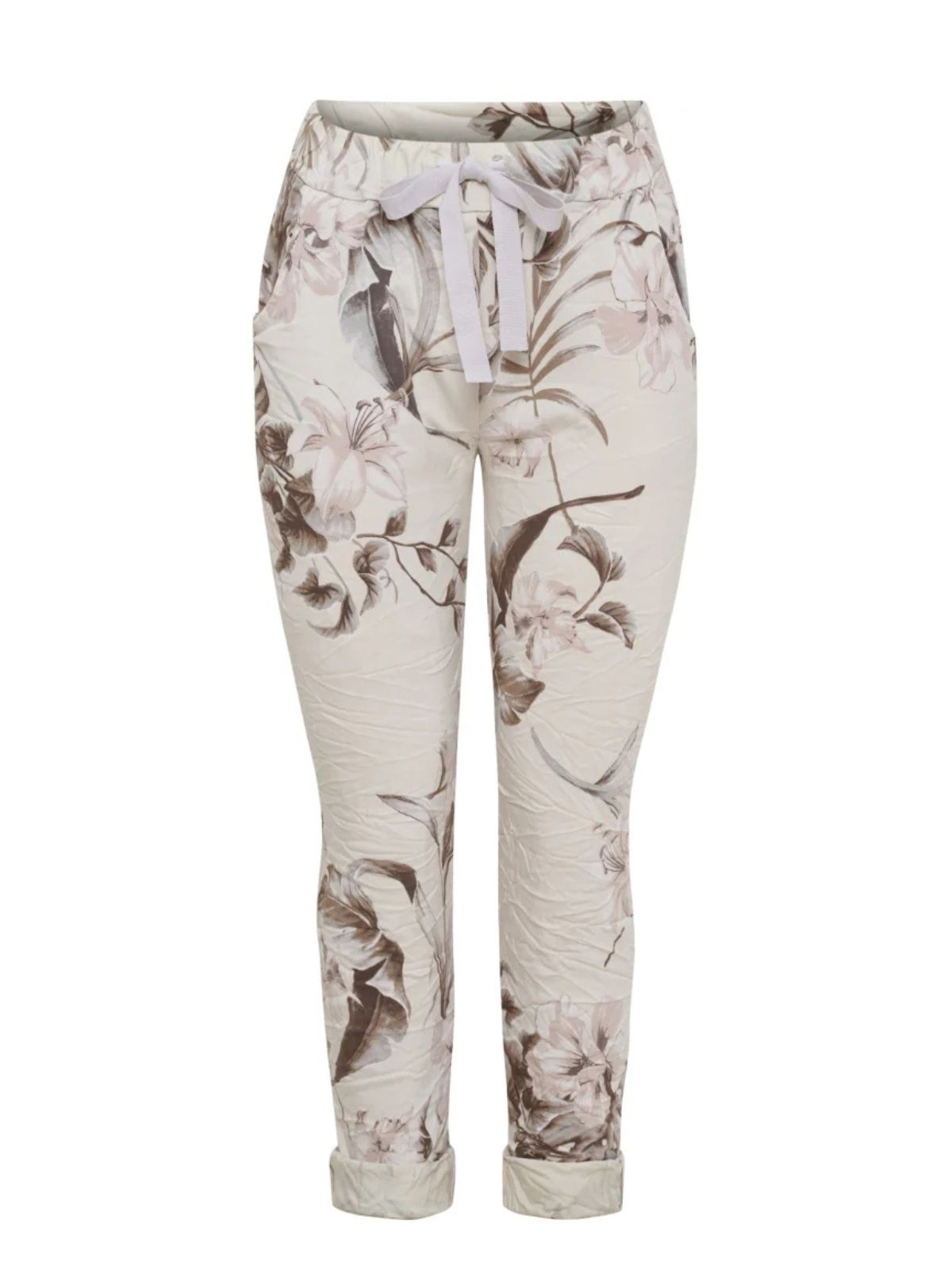 ROSABEL smarte bukser med blomsterprint fra Marta de Chauteau. Buksen erbløde med elastisk talje med bindebånd og i design med masser af stræk for den gode komfort.