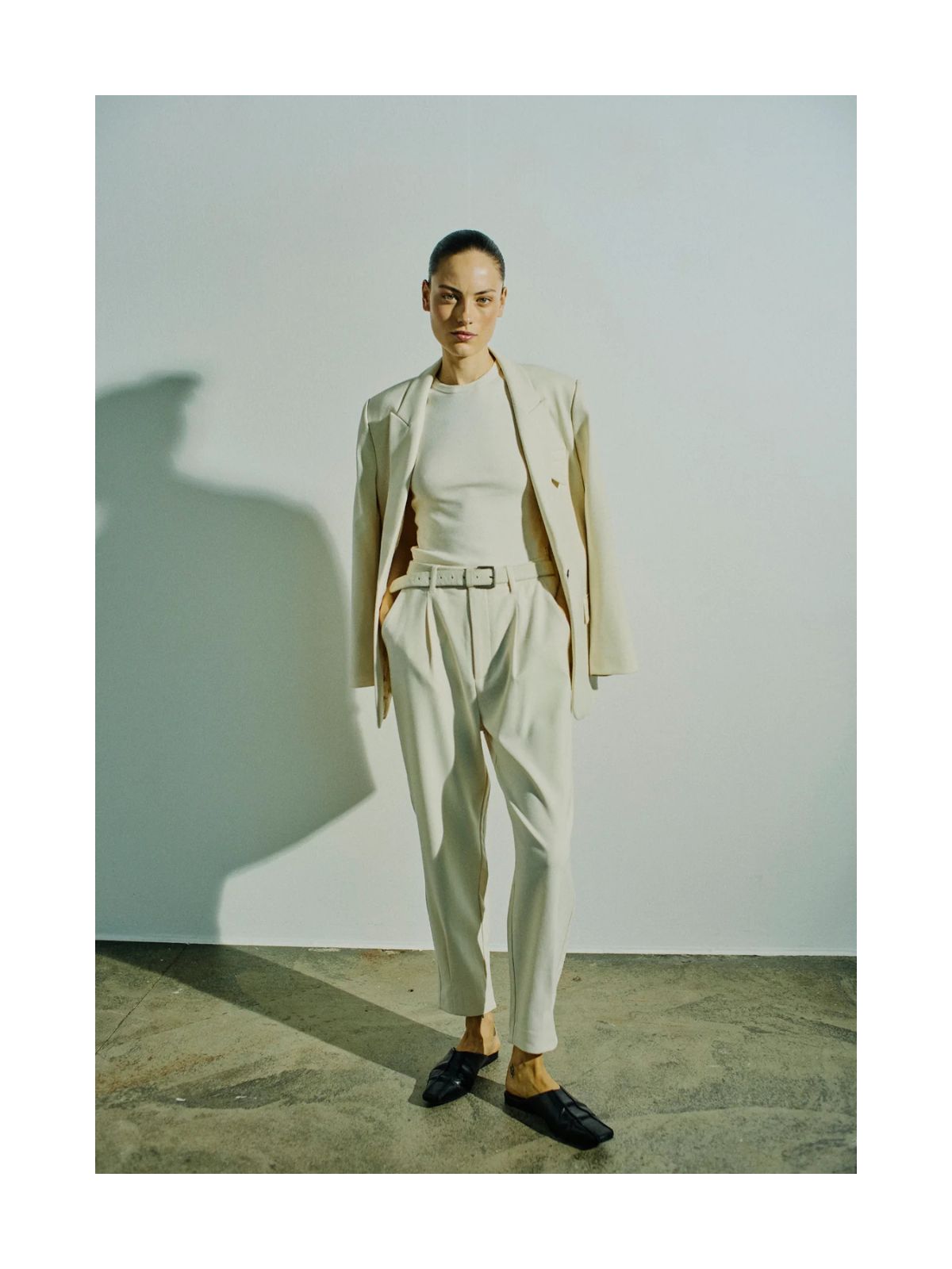 TAILOR-PANT højtaljede bukser fra COPENHAFEN MUSE i en eksklusiv kvalitet med skjult hægte- og lynlåslukning, sidelommer, en løs pasform samt læg i de ankellange bukseben, der giver en elegant indsnævring.Længde: ca. 76 cm Ankellang