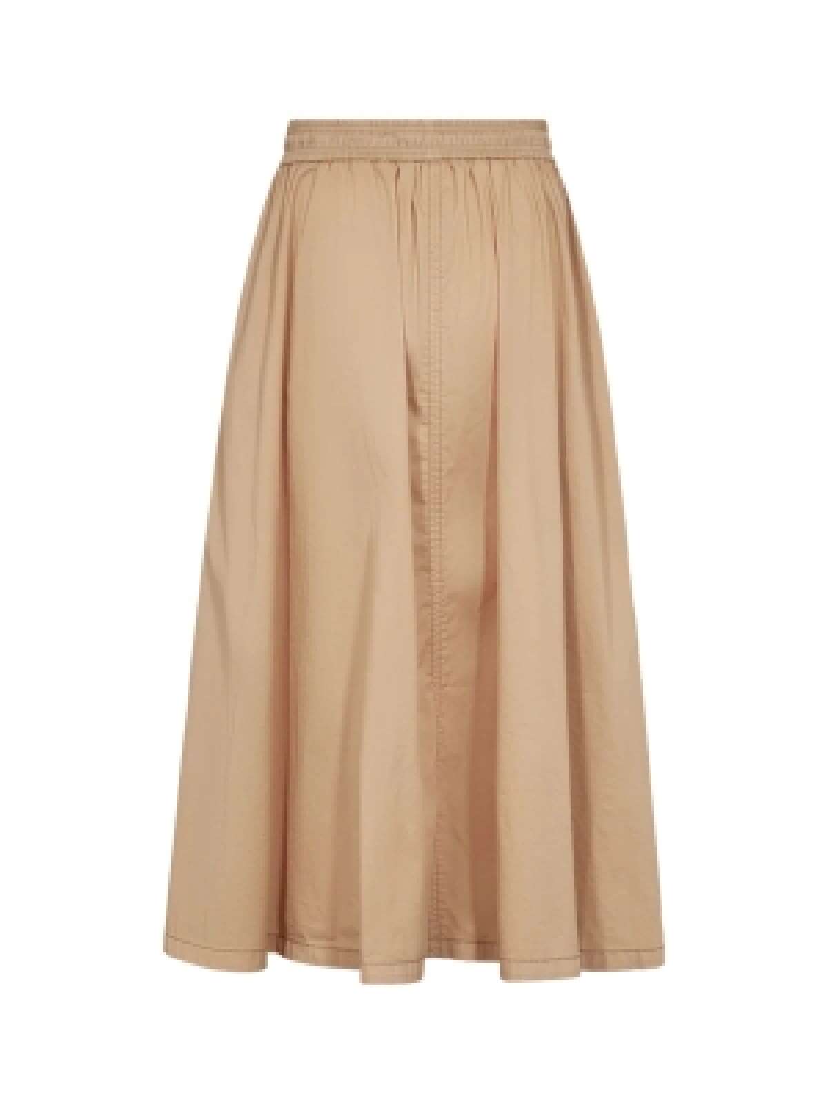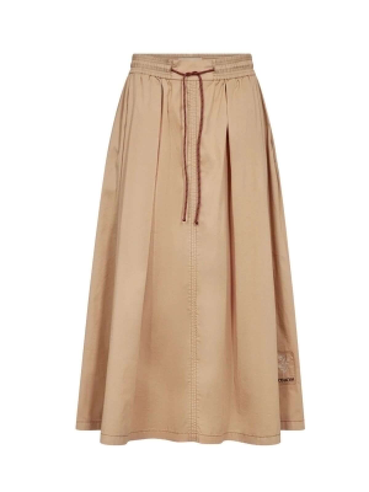 Denne lange nederdel har et let og afslappet udtryk med en behagelig elastisk talje, der sikrer god komfort hele dagen. Den løse silhuet giver et smukt og naturligt fald, som gør nederdelen både feminin og nem at style til mange forskellige anledninger.Den alsidige model fungerer perfekt sammen med både skjorter, strik og lette toppe, alt efter om du ønsker et casual eller mere feminint look.