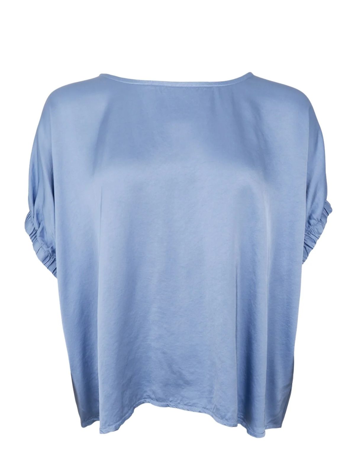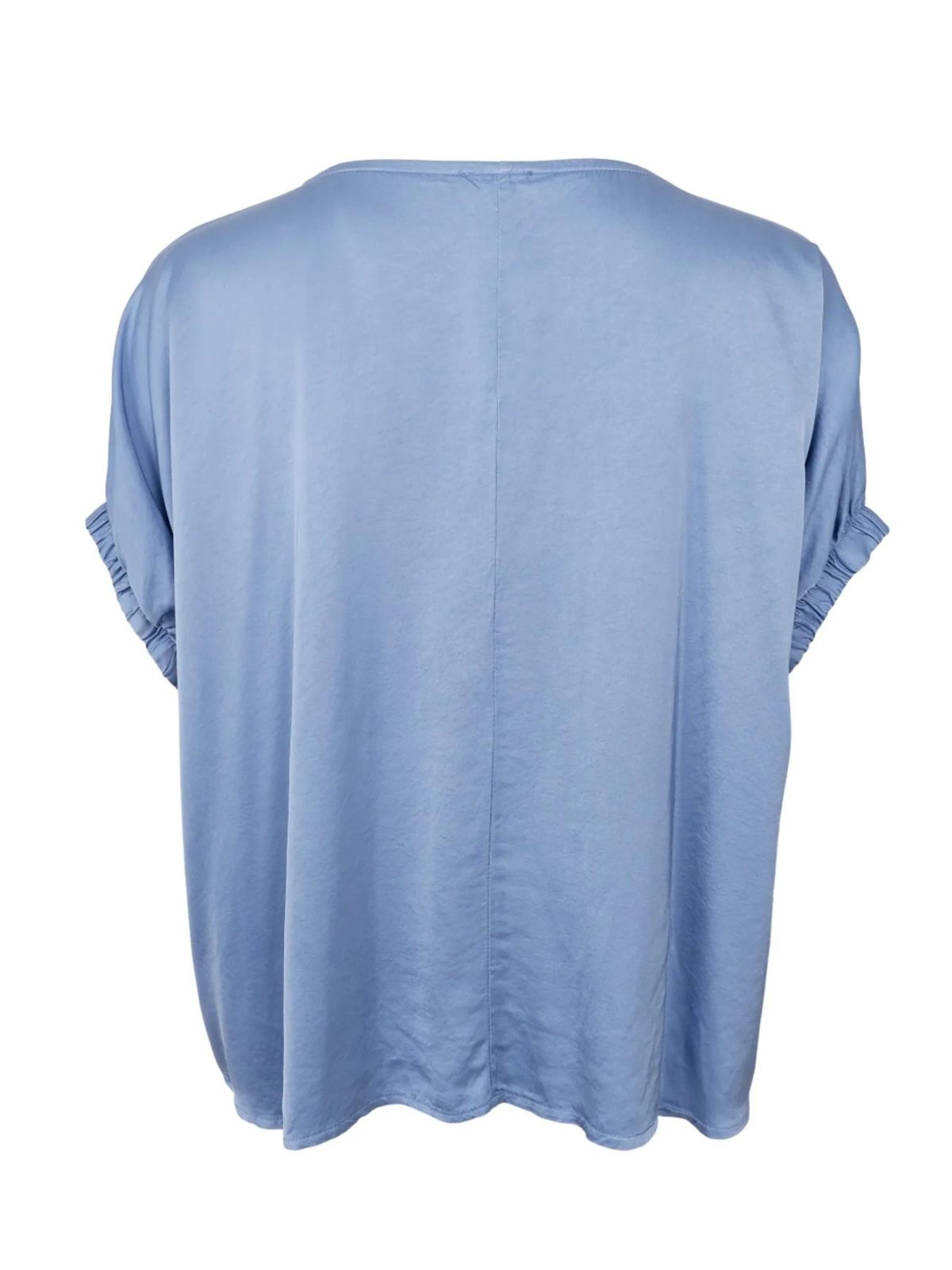 Enkel og stilfuld bluse fra BLACK COLOUR med rund hals og løstsiddende pasform, der falder flot om kroppen. De korte ærmer har en let rynkedetalje, som tilføjer et feminint touch til det ellers minimalistiske udtryk. Fremstillet i en blød og let viskosekvalitet, der gør den ideel til både hverdag og mere formelle lejligheder.Længde: ca. 64 cm