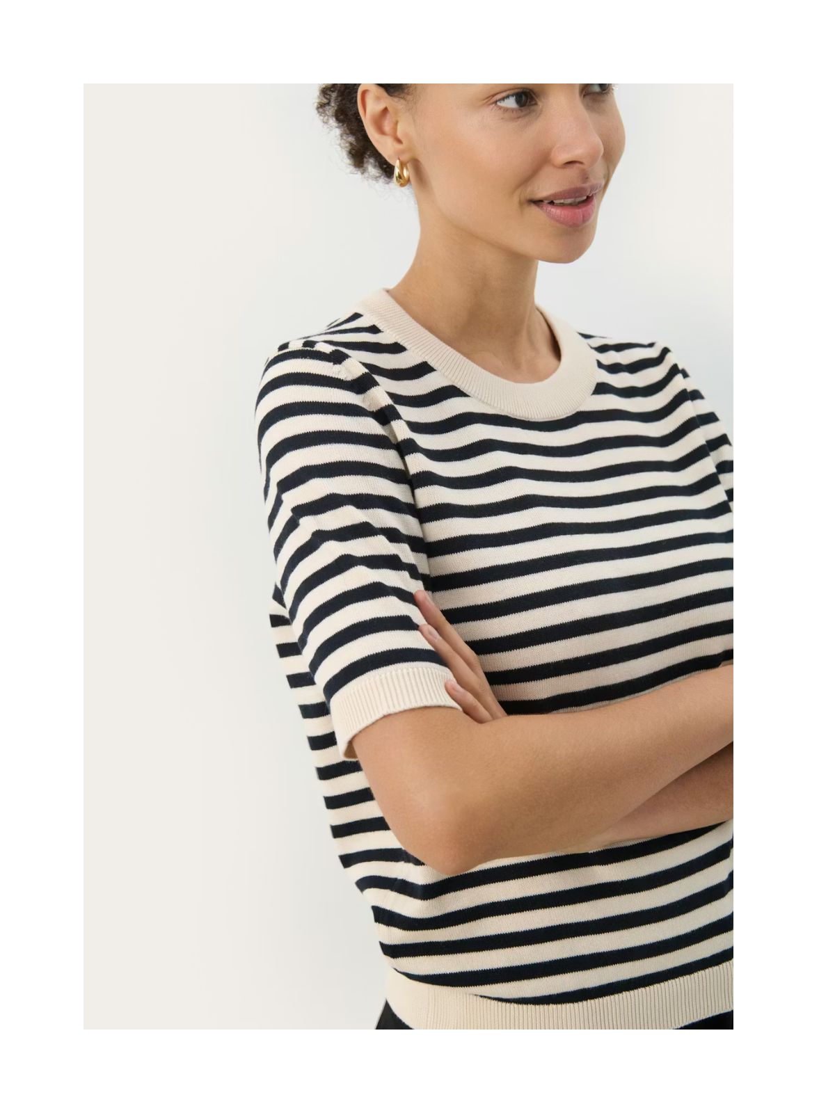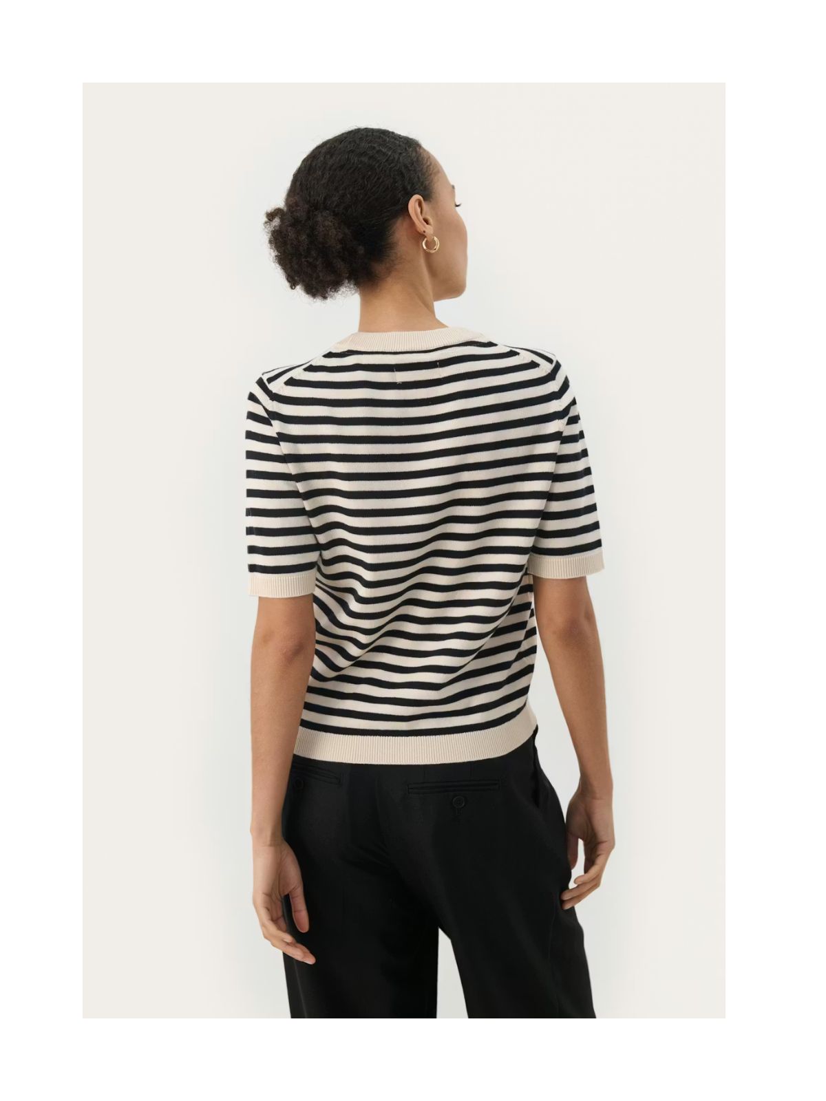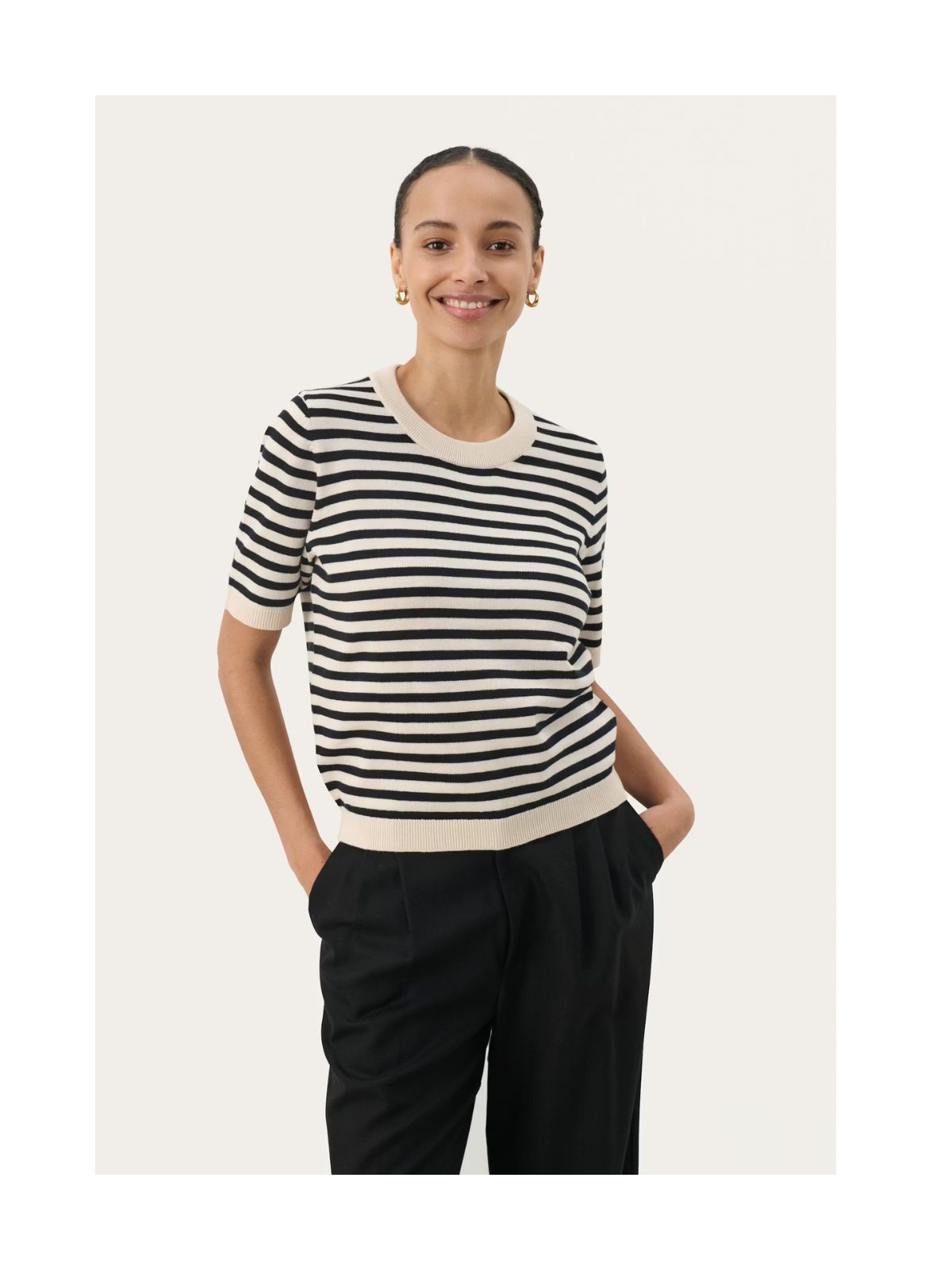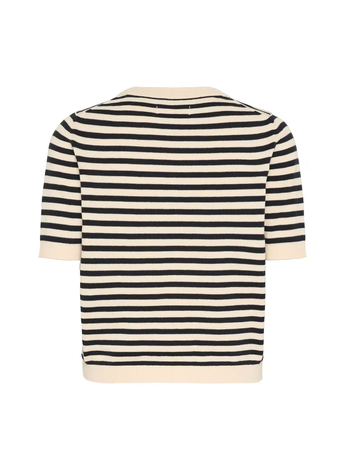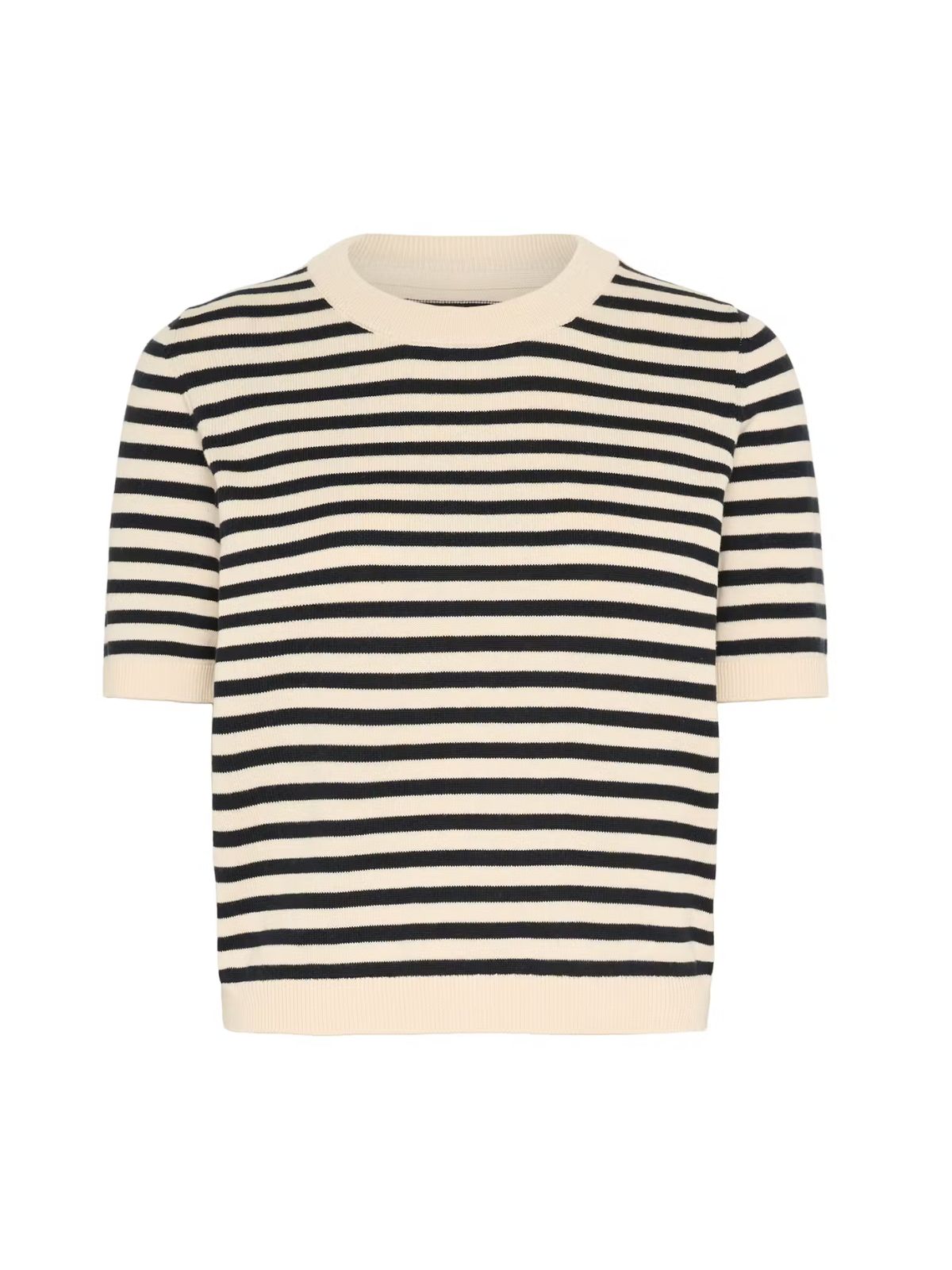 Klassisk kortærmet striktop fra PART TWO i et stribet design med rund hals og ribkanter. Det bløde materiale og den flotte pasform gør den behagelig hele dagen. Style den med en jeans eller til nederdel.Længde: ca. 60 cm