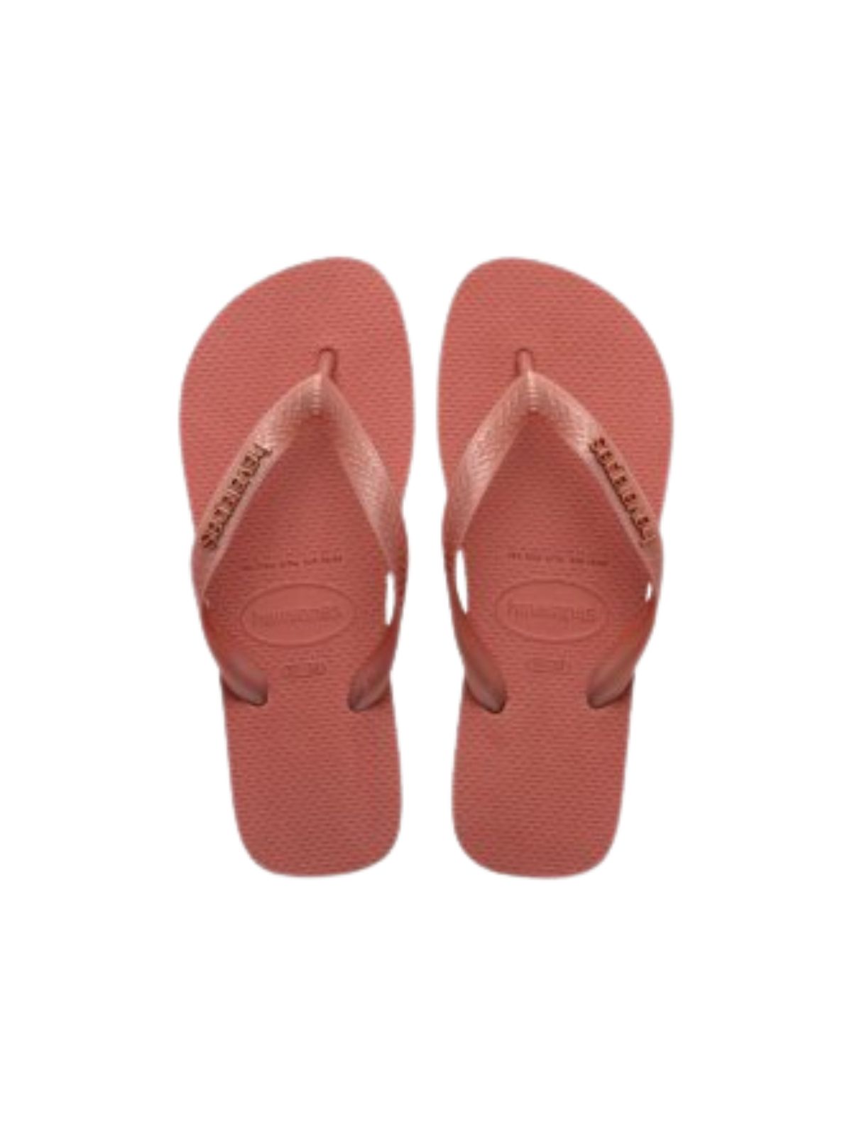 Smukke flip flops fra Havaianas i en elegant gammelrosa nuance med fine, metalliske detaljer. De brede remme har en let shine og er dekoreret med et logoemblem i metallisk rosa, som giver et feminint og eksklusivt udtryk. Modellen har rund snude, blød sål og tåsplit, hvilket sikrer en behagelig pasform hele dagen.Sandalerne er fremstillet i 100% gummi og er designet til at være både lette og komfortable at have på. De er vandresistente, varmeresistente og meget slidstærke, hvilket gør dem ideelle til både strand, ferie og hverdagsbrug i sommermånederne.