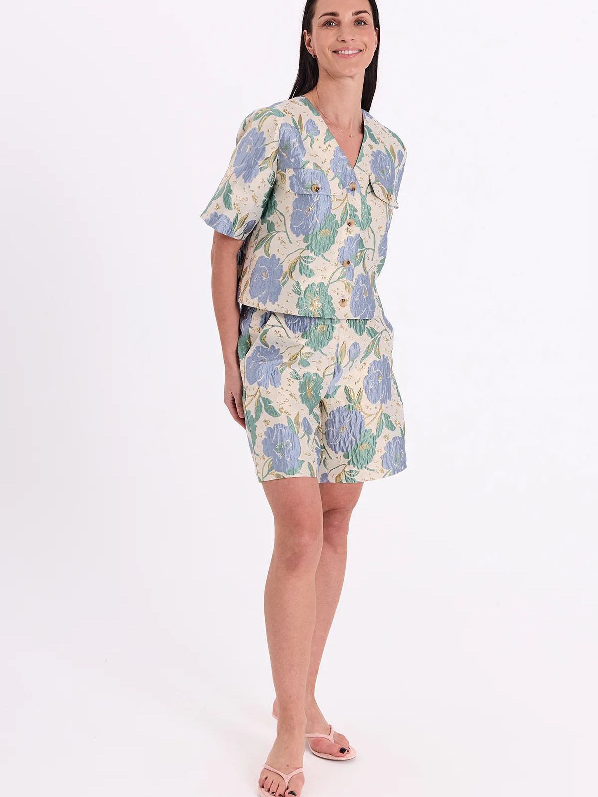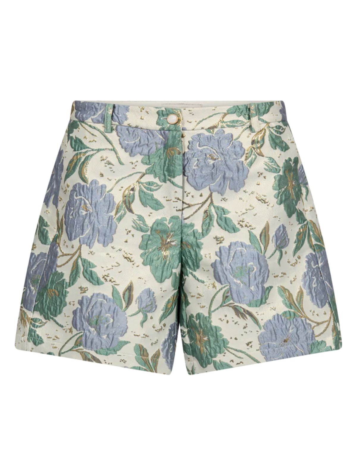 FAY Elegant shorts fra Freequent i smukt jacquard blomstermønster i sarte farver og elegante detaljer. Derudover er shortsene enkle i modellen med knap- og lynlåslukning, skrå sidelommer samt lige bukseben.Indvendig Benlængde: ca. 20 cm