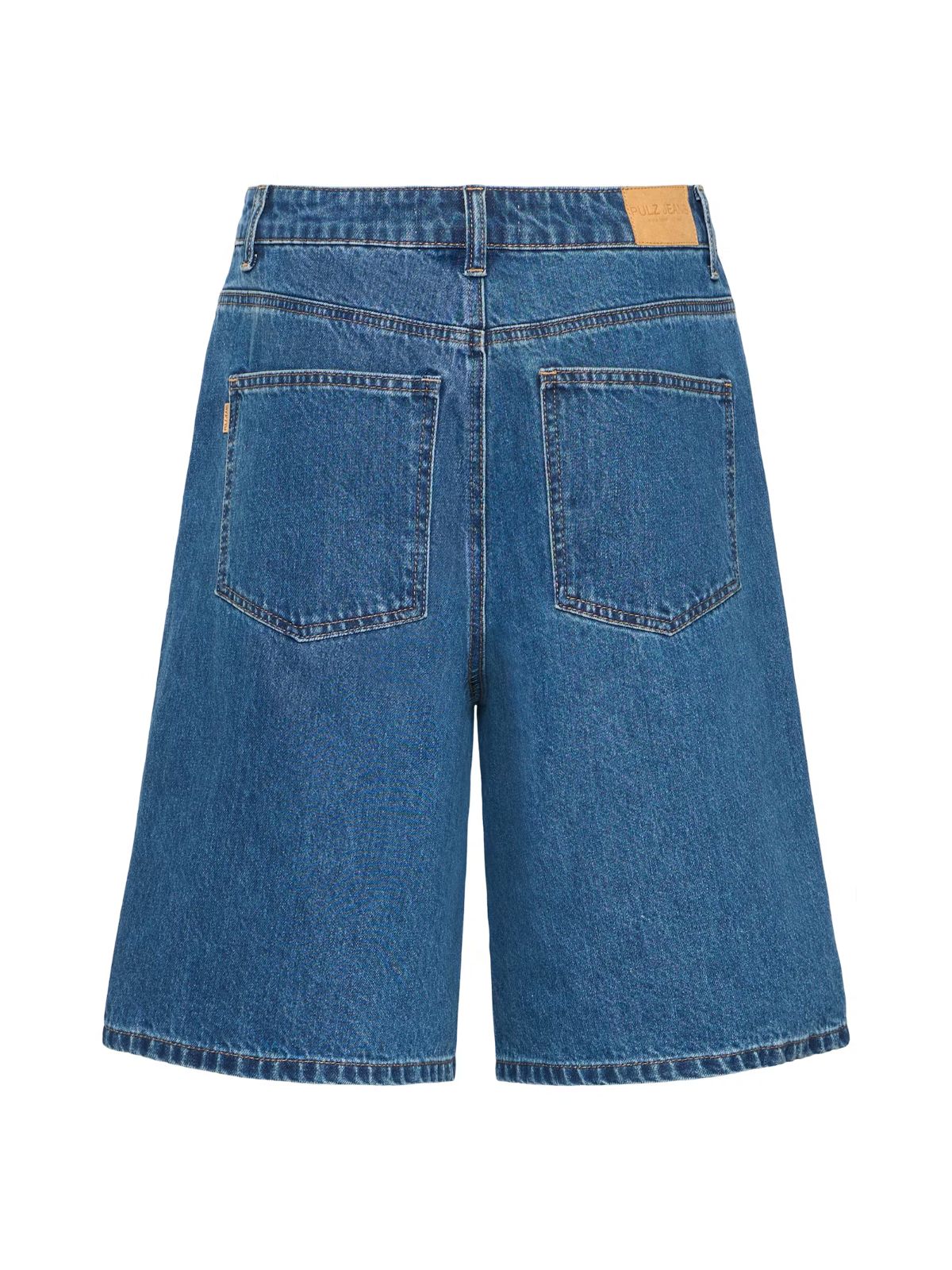 Bridget Klassiske denim cityshorts fra PULZ med lige, knælængde pasform, klassisk fem-lommers design og bæltestropper. Synlige stikninger og knaplukning fuldender det tidløse udtryk.Pasform: Regulær Fit