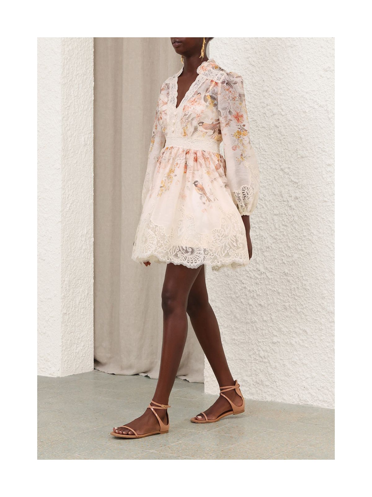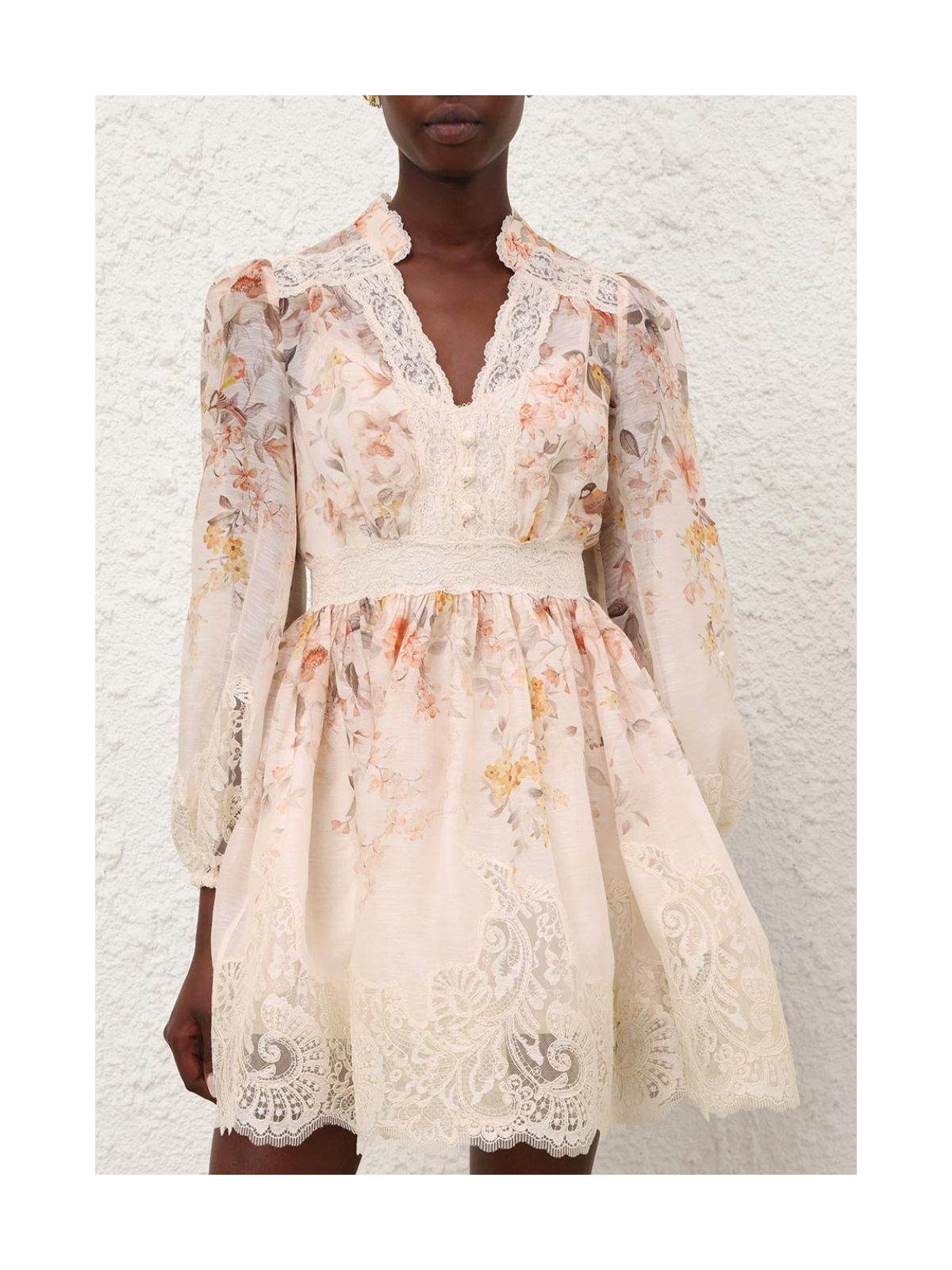 Imposant Luna Lace Lantern-kjolen fra ZIMMERMANN i Cream Songbird fra Kindred Spirit. Elegant minikjole i silke-hør med dyb V-udskæring, delvis standkrave, lange ballon ærmer med elastiske manchetter, en tætsiddende linning og et svaj i nederdelen. Kjolen har et smukt floralt blomster mønster i sarte farver samt de fineste blonder detaljer overalt på kjolen. Tætsiddende underkjole følger med kjolen. En kjole til helt særlige begivenheder eller til en sommerdag og aften!Str. 2 / 40 - Str. 3 / 42