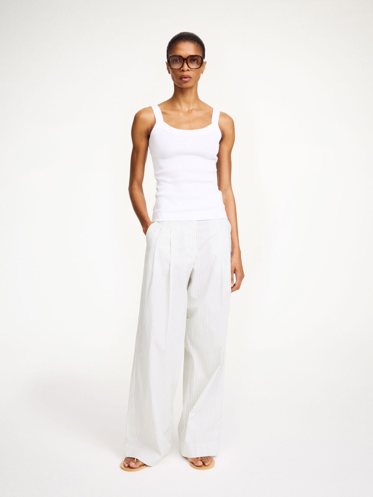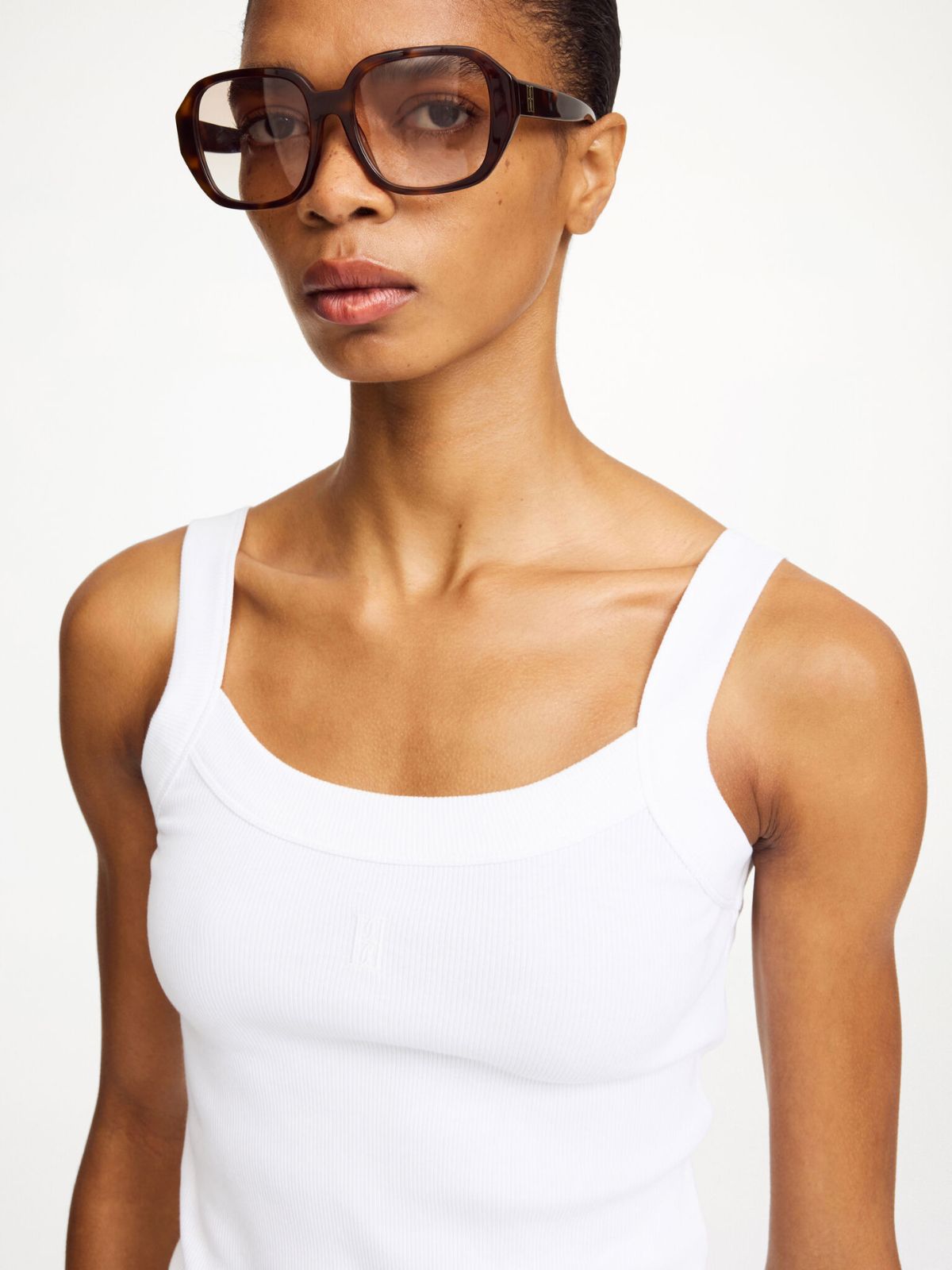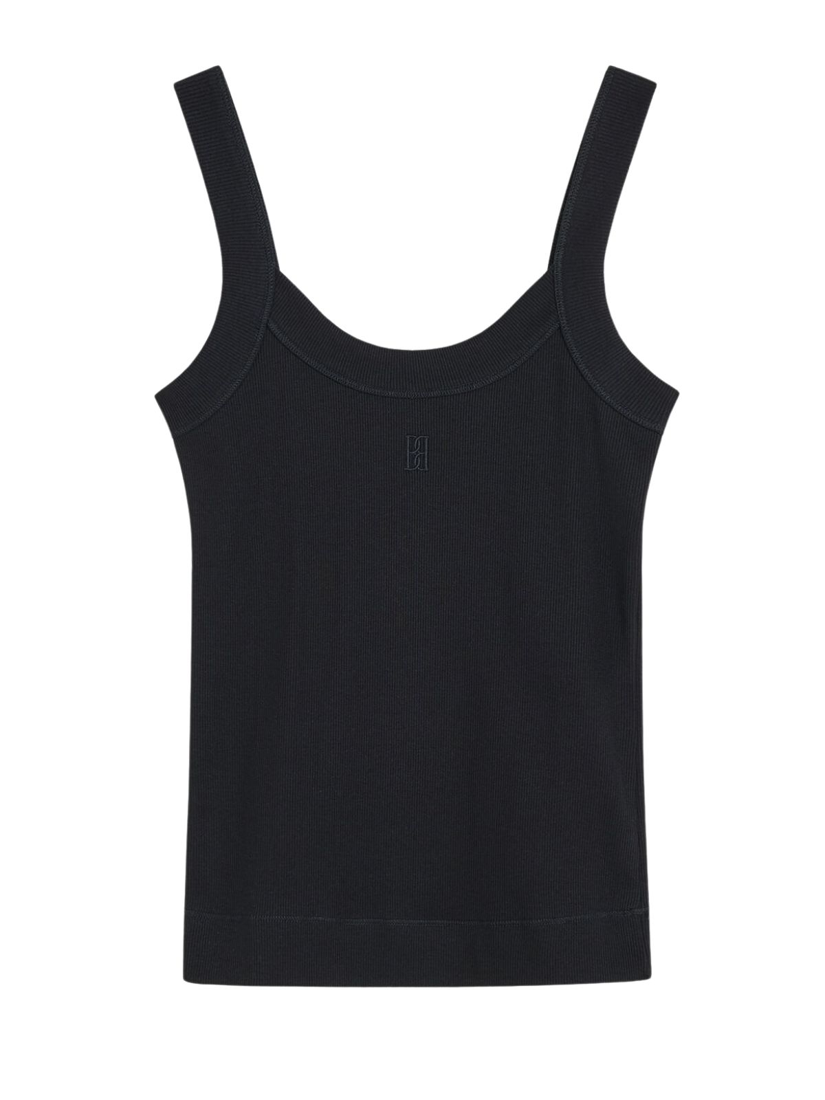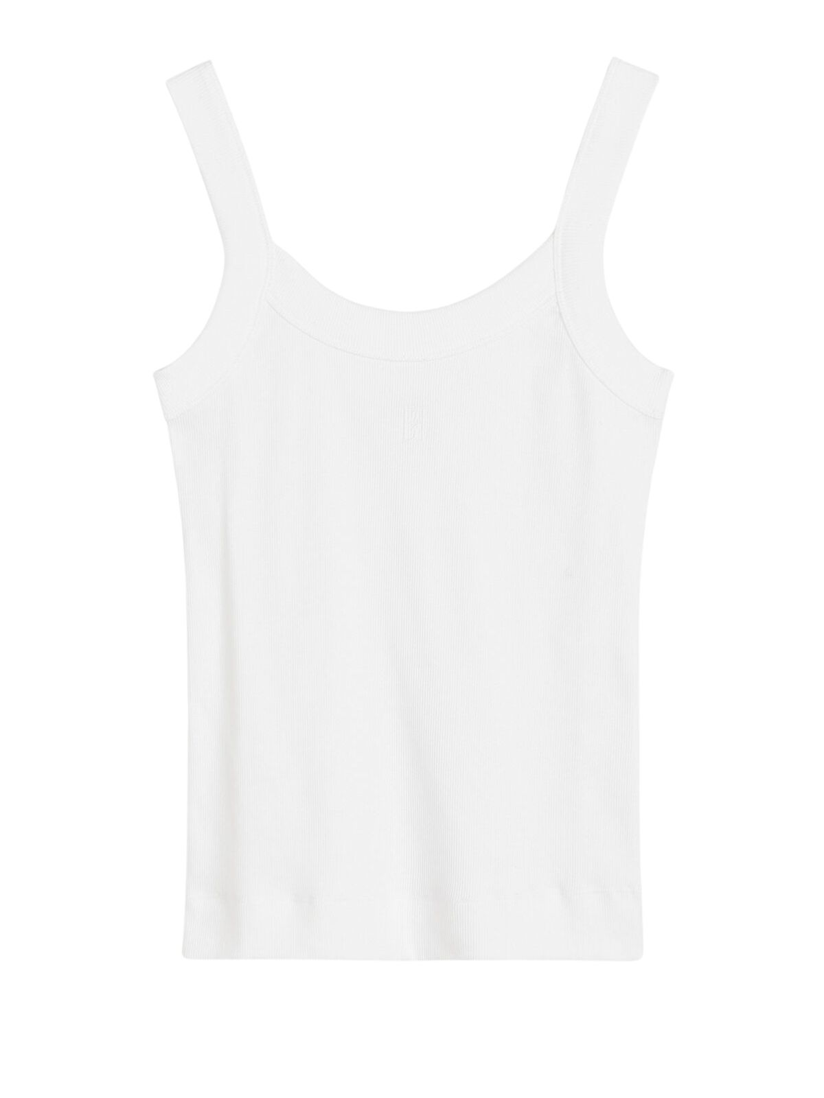 FRILLO Minimalistisk tanktop fra By Malene Birger – som f.eks. Frillio-designet – vil passe perfekt ind i enhver moderne kvindes garderobe. Toppen er lavet i en økologisk bomuldsblanding med stretch, og den afslappede silhuet falder ned fra brede stropper og har en dyb rund halsudskæring. Bemærk det lille, broderede monogram foran.Længde: ca. 60 cm